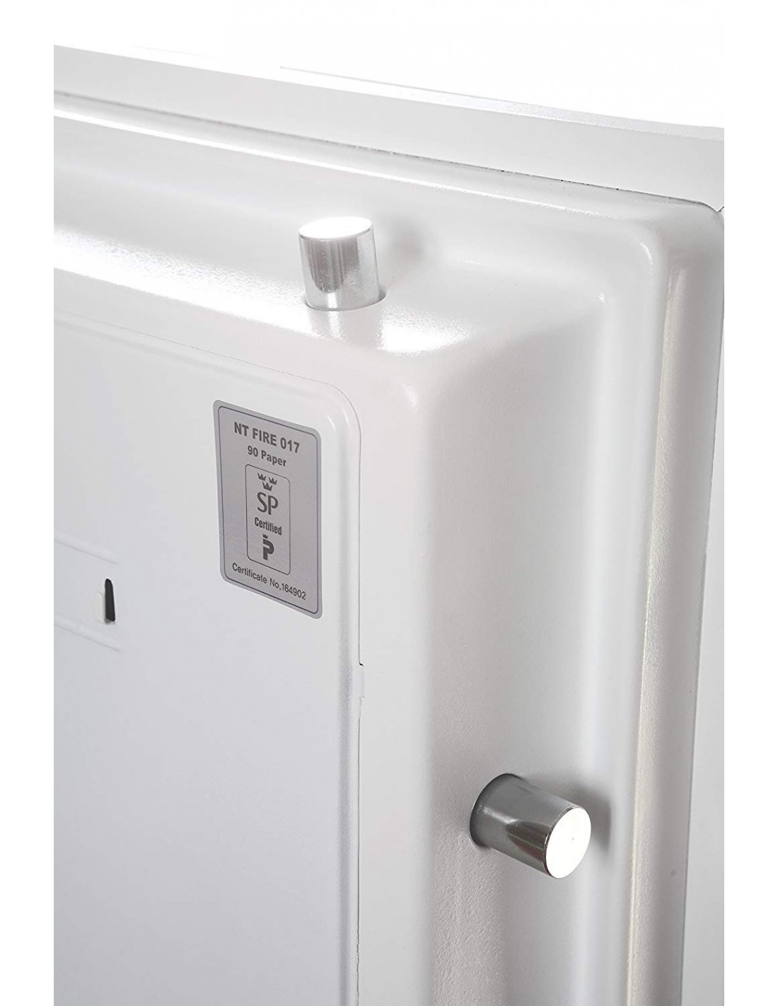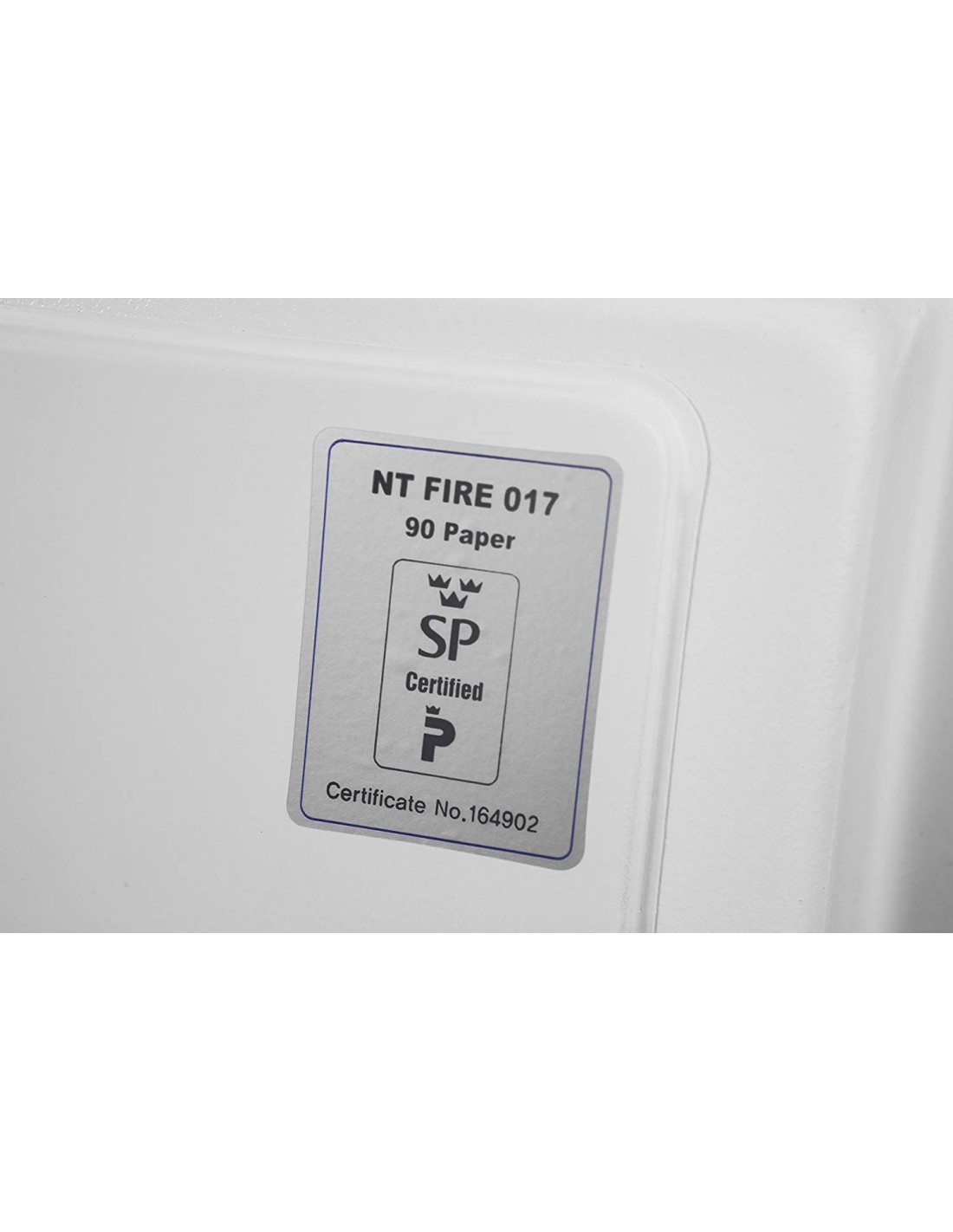 - PROTECTION FEU (PAPIER): Testé par la norme Suédoise NT Fire 017 - 90 Paper. Offrant 90 minutes de protection au feu pour documents papier.