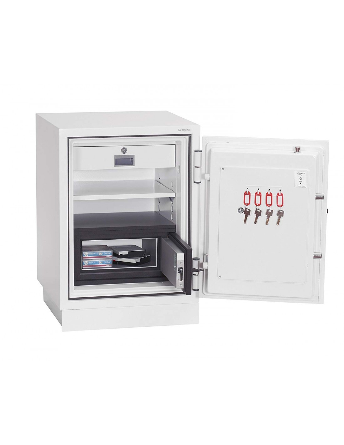 Le coffre fort ignifuge Datacombi DS2501F de Phoenix est homologué selon la norme Suédoise NT Fire 017-90 dis, il fournit alors 90 minutes de protection contre le feu pour les papiers ainsi que pour pour les disquettes informatiques, sauvegardes et toutes autres formes de rangement de données. Il offre aussi une protection pour vos biens avec valeur assurable recommandée 2,500.00€ d'argent liquide ou €25,000.00 d'objets de valeur.