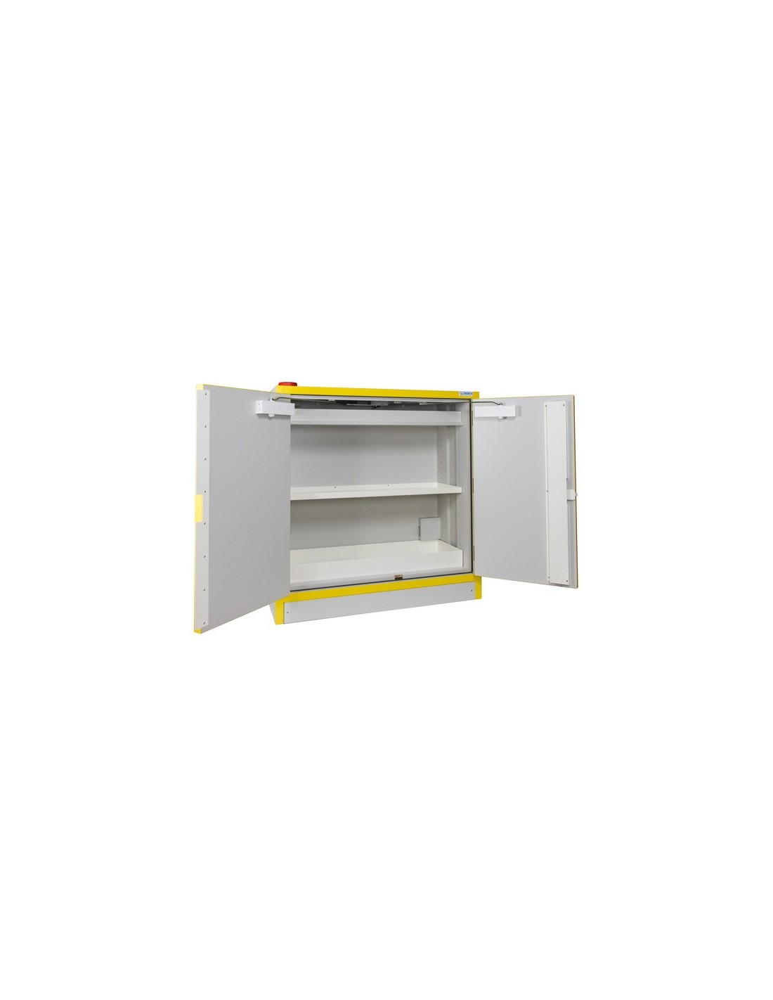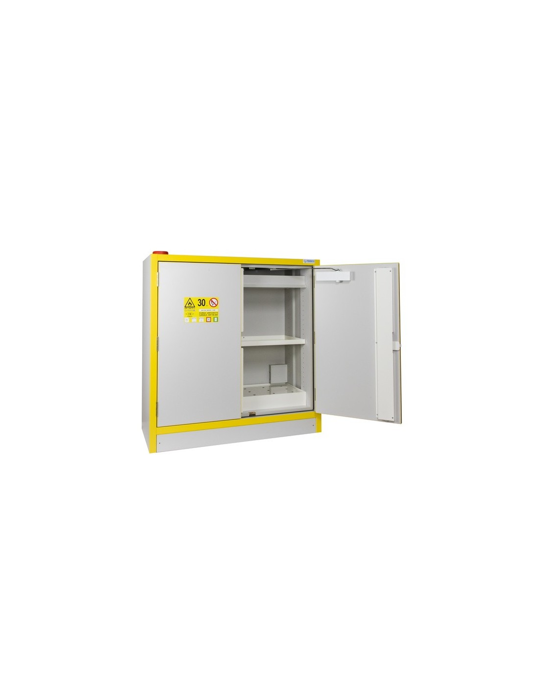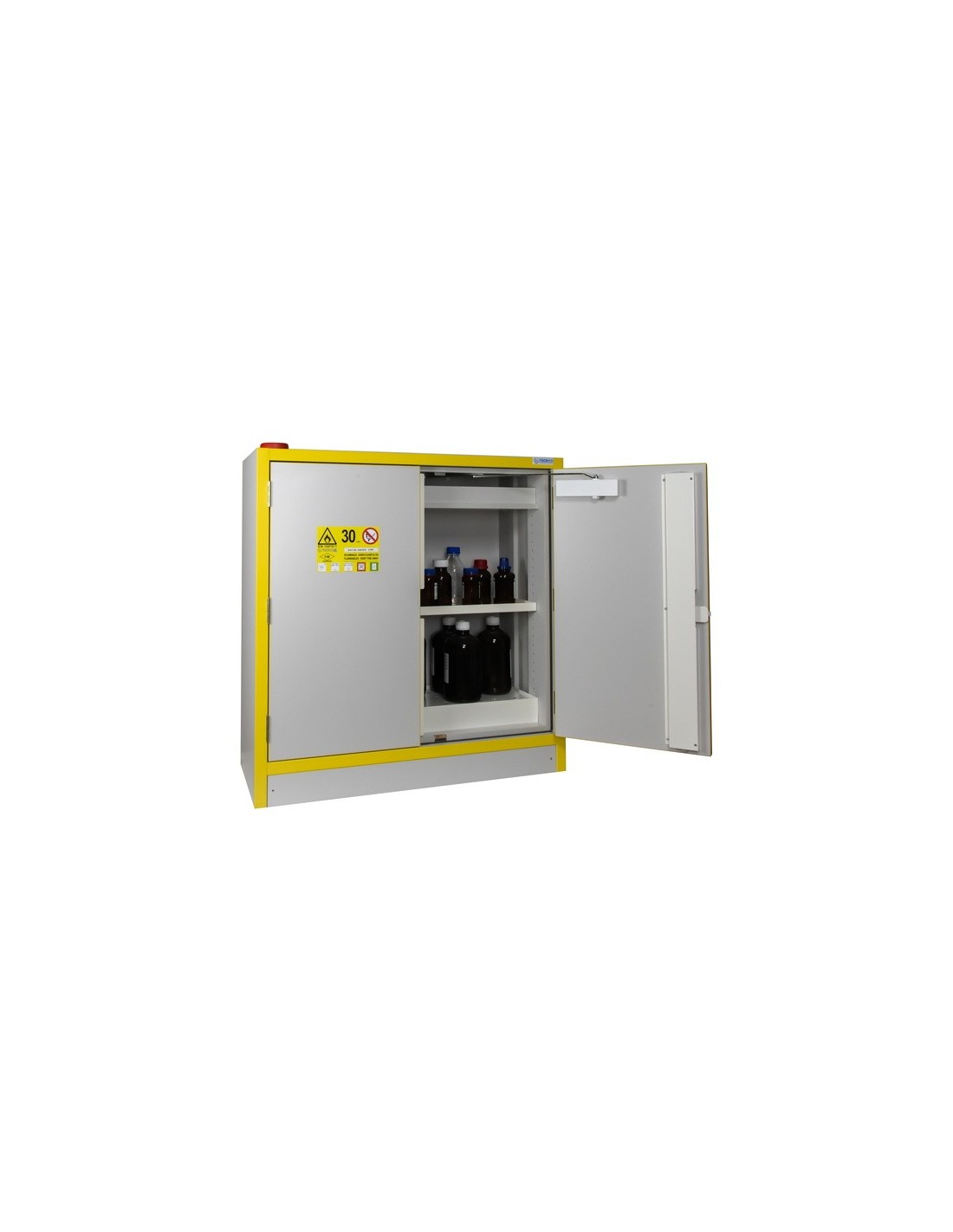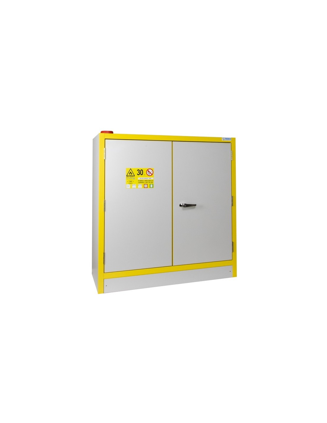 Référence 3033UE Conformité EN 14470-1, FM 6050 Construction de l'armoire bois mélaminé Couleur des portes gris clair RAL 7035 Nombre de porte(s) 2 Type de porte(s) battantes Charnières droite et gauche Fermeture de(s) porte(s) automatique Diamètre de ventilation (mm) 100 Nombre de compartiment(s) 1 Etagère(s) 1 Sur-étagère(s) en PVC Option Bac(s) de rétention 1 Bac(s) de rétention en PVC Option Caillebotis Option Capacité de rétention (L) 31 Dimensions extérieures H x L x P (mm) 1198 x 1115 x 630 Dimensions intérieures H x L x P (mm) 1198 x 1092 x 537 Dimensions à l'expédition H x L x P (mm) 2180 x 1200 x 800 Charge admissible 50 Capacité de stockage (L) 130 Poids (kg) 170.00 Code douanier 94036000