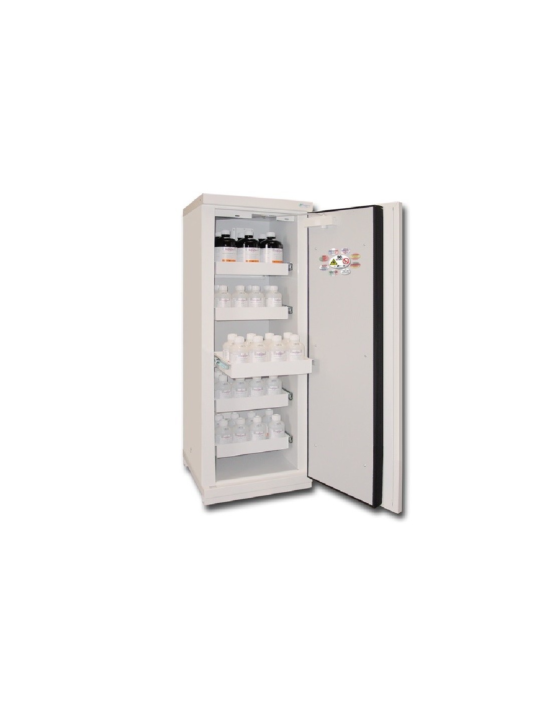 Référence 794+T4 Conformité EN 14470-1, EN 1363-1 Construction de l'armoire acier 12/10e et parois intérieures en mélaminé Couleur des portes blanche RAL 9010 Nombre de porte(s) 2 Type de porte(s) battantes Charnières droite et gauche Fermeture de(s) porte(s) automatique Diamètre de ventilation (mm) 100 Nombre de compartiment(s) 1 Bac(s) de rétention Option Capacité de rétention (L) 48 Dimensions extérieures H x L x P (mm) 1950 x 635 x 620 Dimensions intérieures H x L x P (mm) 1620 x 490 x 410 Dimensions à l'expédition H x L x P (mm) 2150 x 1200 x 800 Charge admissible 30 Capacité de stockage (L) 130 Poids (kg) 301.00 Code douanier 94032080