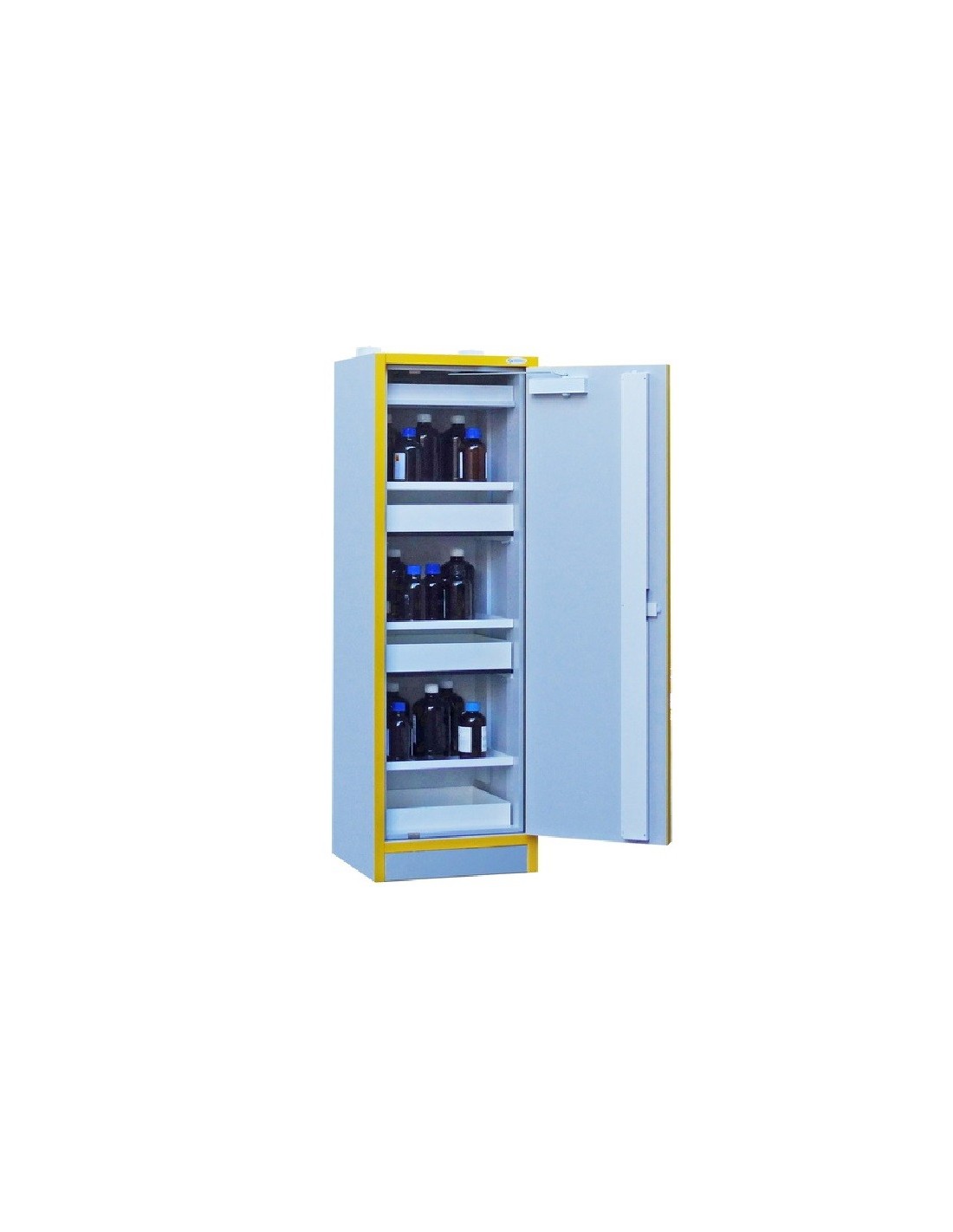 Référence 3034M3 Conformité EN 14470-1, FM 6050 Construction de l'armoire bois mélaminé Couleur des portes gris clair RAL 7035 Nombre de porte(s) 1 Type de porte(s) battantes Charnières droite Fermeture de(s) porte(s) automatique Diamètre de ventilation (mm) 100 Nombre de compartiment(s) 3 Etagère(s) 3 Sur-étagère(s) en PVC Option Bac(s) de rétention 3 Bac(s) de rétention en PVC Option Caillebotis Option Capacité de rétention (L) 60 Dimensions extérieures H x L x P (mm) 1980 x 605 x 550 Dimensions intérieures H x L x P (mm) (3* 516) x 490 x 410 Dimensions à l'expédition H x L x P (mm) 2180 x 1200 x 800 Charge admissible 30 Capacité de stockage (L) 90 Poids (kg) 129.00 Code douanier 94036000