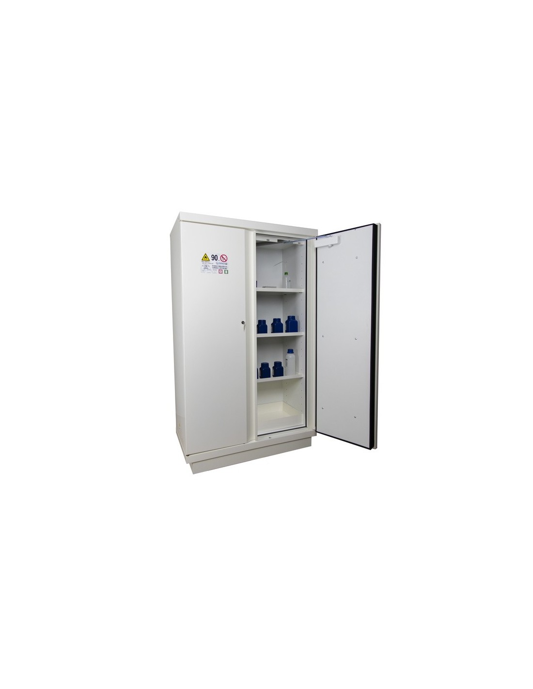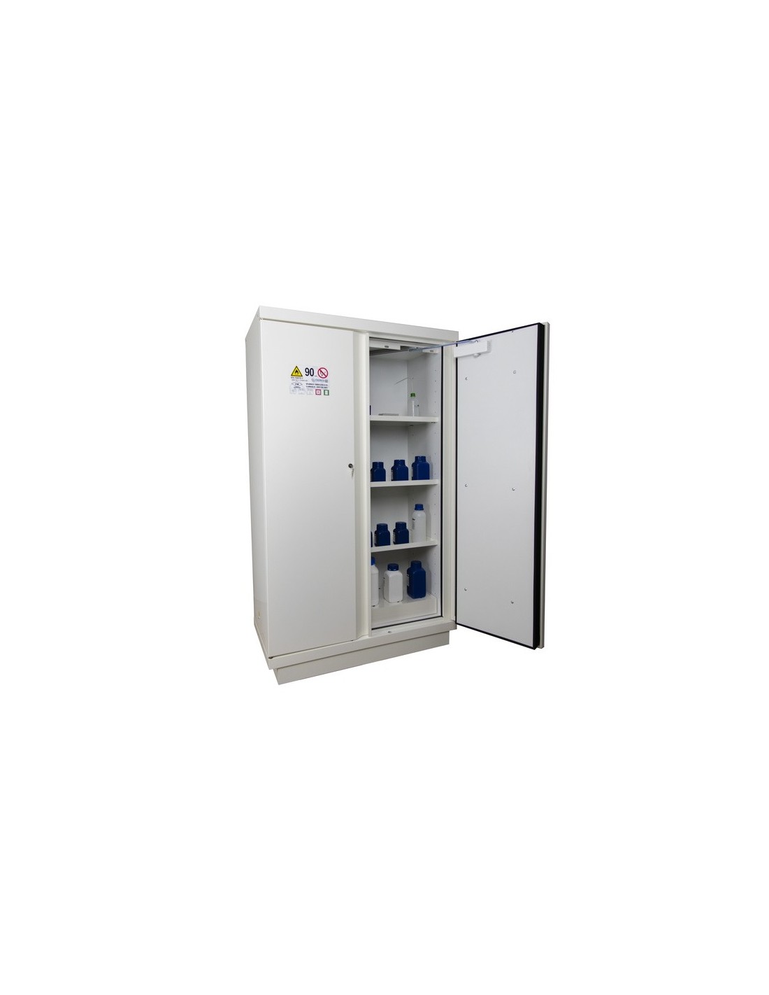 Référence 795+M11 Conformité EN 14470-1, EN 1363-1 Construction de l'armoire acier 12/10e et parois intérieures en mélaminé Couleur des portes blanche RAL 9010 Nombre de porte(s) 2 Type de porte(s) battantes Charnières droite et gauche Fermeture de(s) porte(s) automatique Diamètre de ventilation (mm) 100 Nombre de compartiment(s) 2 Etagère(s) 6 Sur-étagère(s) en PVC Option Bac(s) de rétention 2 Bac(s) de rétention en PVC Option Caillebotis Option Capacité de rétention (L) 40 Dimensions extérieures H x L x P (mm) 1950 x 1137 x 620 Dimensions intérieures H x L x P (mm) 1620 x (2* 490) x 410 Dimensions à l'expédition H x L x P (mm) 2150 x 1200 x 800 Charge admissible 30 Capacité de stockage (L) 240 Poids (kg) 477.00 Code douanier 94032080