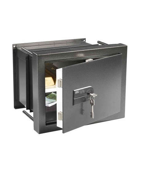 Dans le but de garantir une protection optimale, Le coffre fort mural Karat WT 614 K, est construit d’un corps en acier inoxydable avec une protection contre l’oxycoupage. Il dispose d’une porte d’une double paroi avec une armature protectrice supplémentaire. La plaque frontale de la porte est en acier manganèse massif d’une épaisseur de 7mm.