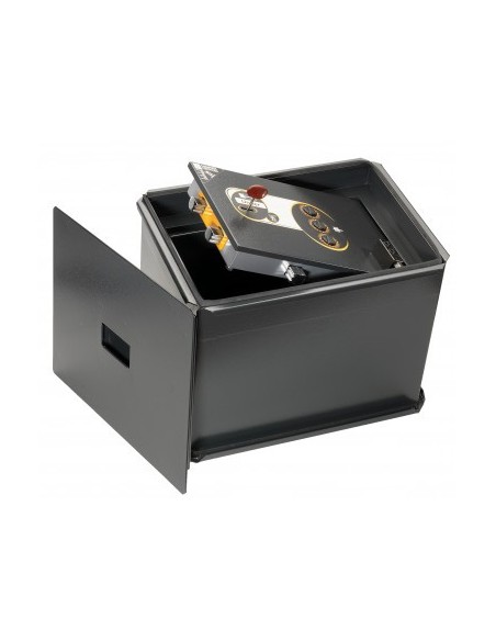 Coffre-fort avec porte supérieure pour une installation sous le niveau du sol.