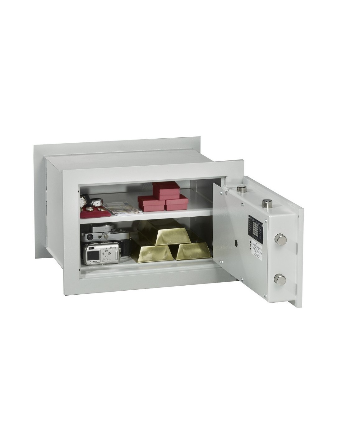 En ce qui concerne la sécurité, en plus d’être ignifuge, Mural 30 est certifié de classe 1 selon la norme européenne EN 1443-1 et malgré être facile à voiler, ses options de sécurité assurent la résistance du coffre fort et qu’il soit difficile à forcer : une structure blindée par un pavé de manganèse anti-perçage, ses pênes d’acier assurent plus de confort et sécurité.la serrure de ce modèle de Mural 30 est une serrure de coffre fort WITTKOPP certifiée A2P classe A/E.