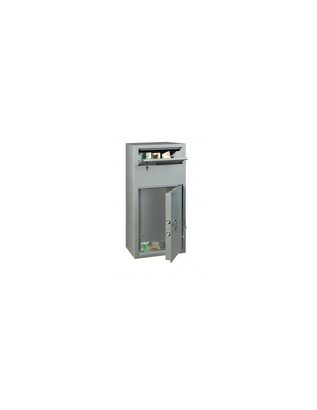 Ce modèle fabriqué en Allemagne garanti une méthode facile et très sécurisé pour l’encaissement des fonds sans avoir besoin d’ouvrir le coffre, de telle façon vous garantissez que le seul qui peut accéder le coffre c’est vous ou votre manager même si ceux qui ouvrent le trappe sont plusieurs. C’est évident alors que la structure réduit les essais d’effraction. (tiroir,trappe)