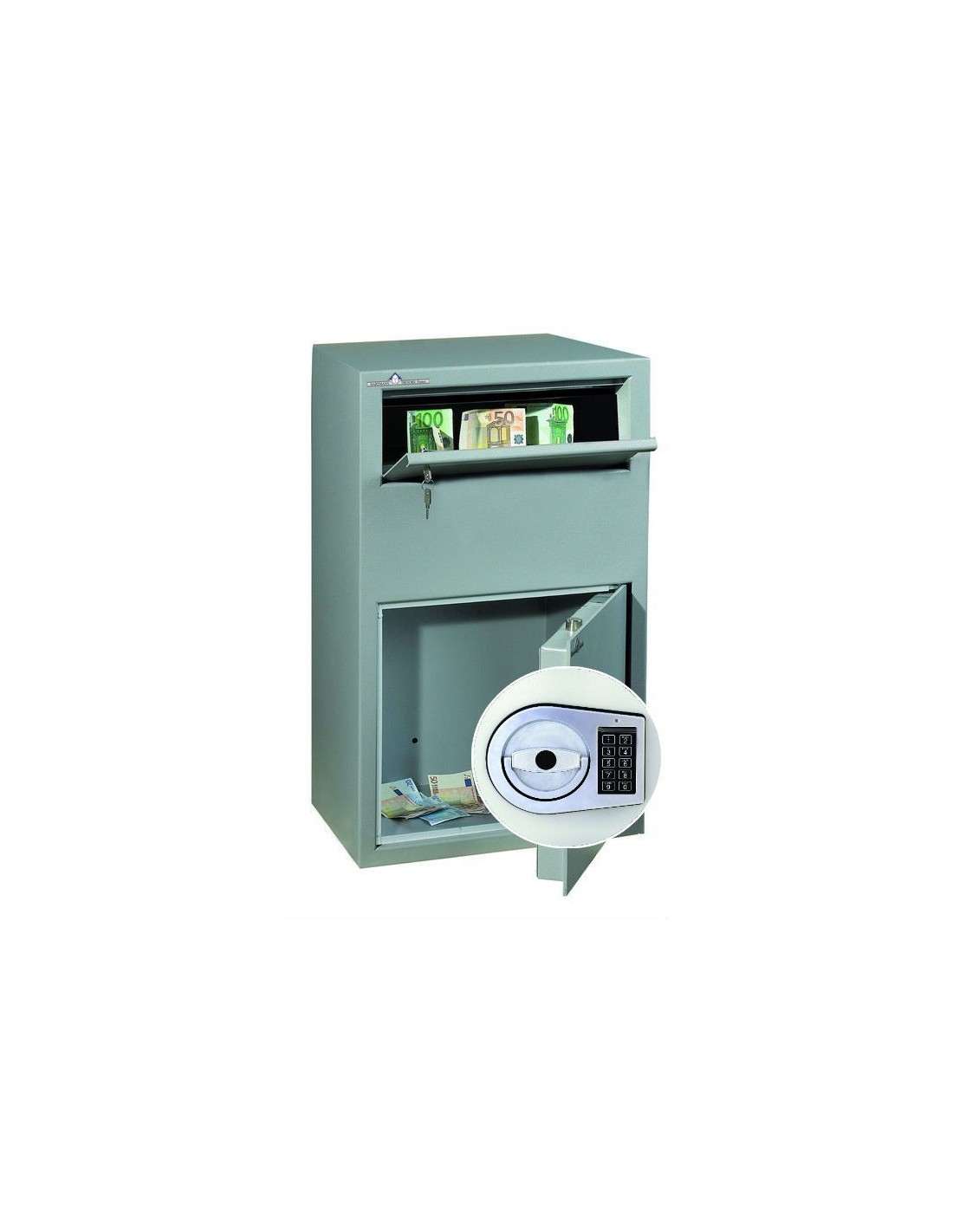 Ce modèle fabriqué en Allemagne garanti une méthode facile et très sécurisé pour l’encaissement des fonds sans avoir besoin d’ouvrir le coffre, de telle façon vous garantissez que le seul qui peut accéder le coffre c’est vous ou votre manager même si ceux qui ouvrent la trappe sont plusieurs. C’est évident alors que la structure réduit les essais d’effraction.