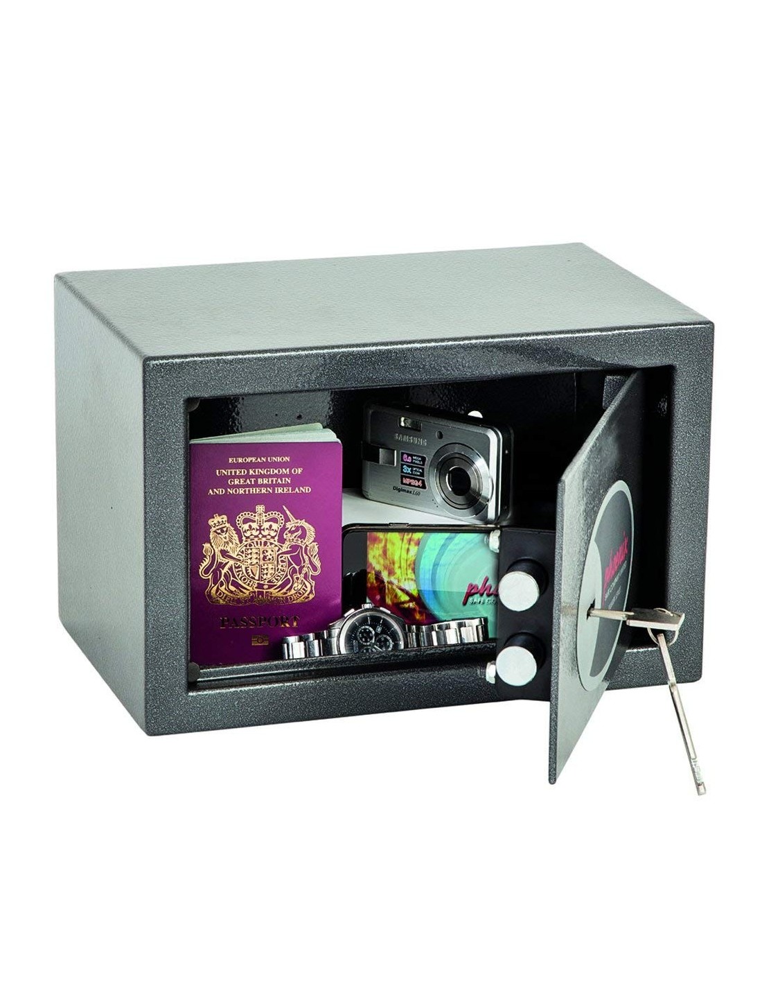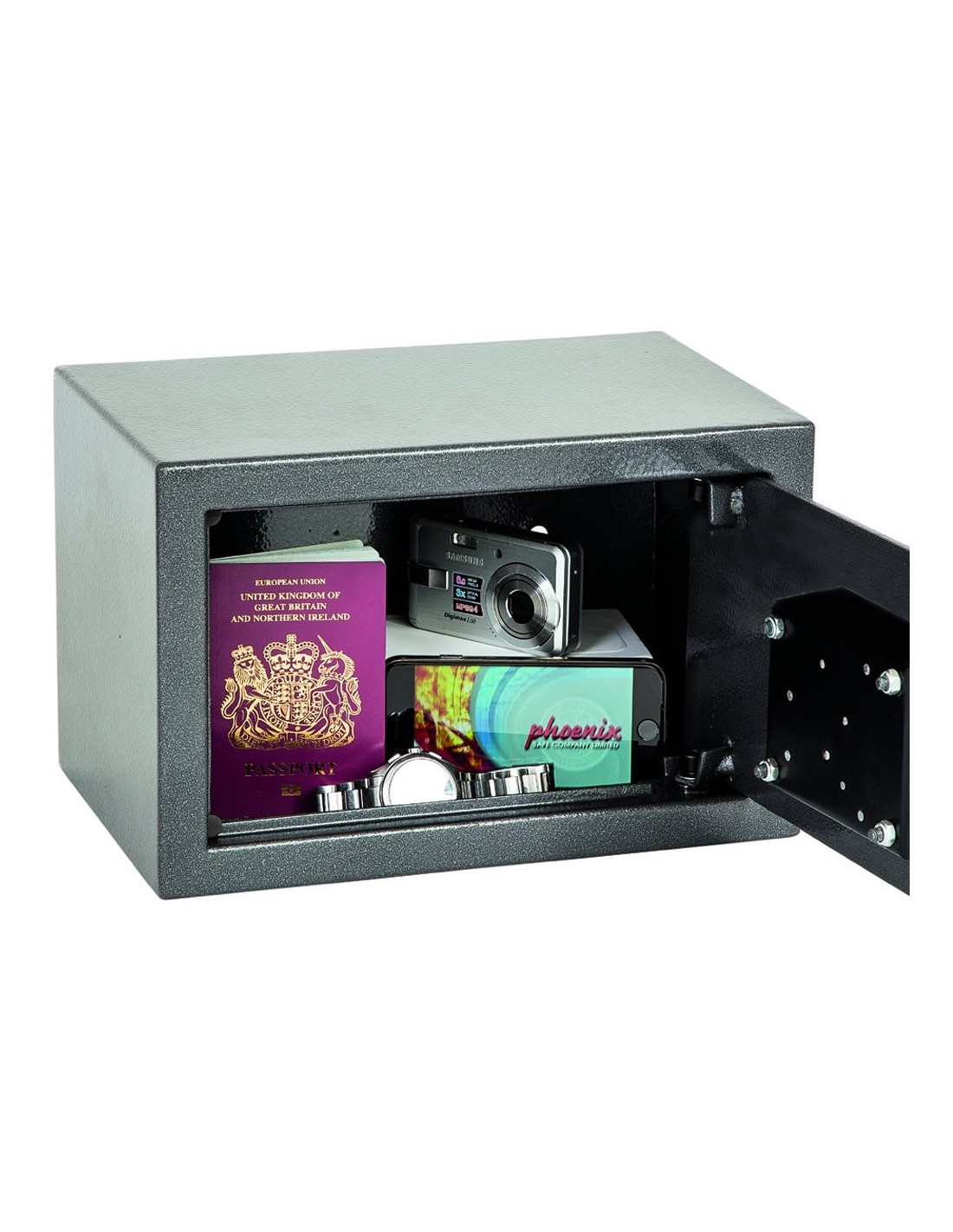 Le Coffre Fort De Sécurité Phoenix Vela Ss0801K de Phoenix de construction robuste est idéal pour usage professionnel, ou domestique, il peut être aussi utilisé dans des chambres d'hôtel . Il offre une protection de valeur assurable de 1,000€ d’argent liquide et de 10,000€ d’objets de valeurs.