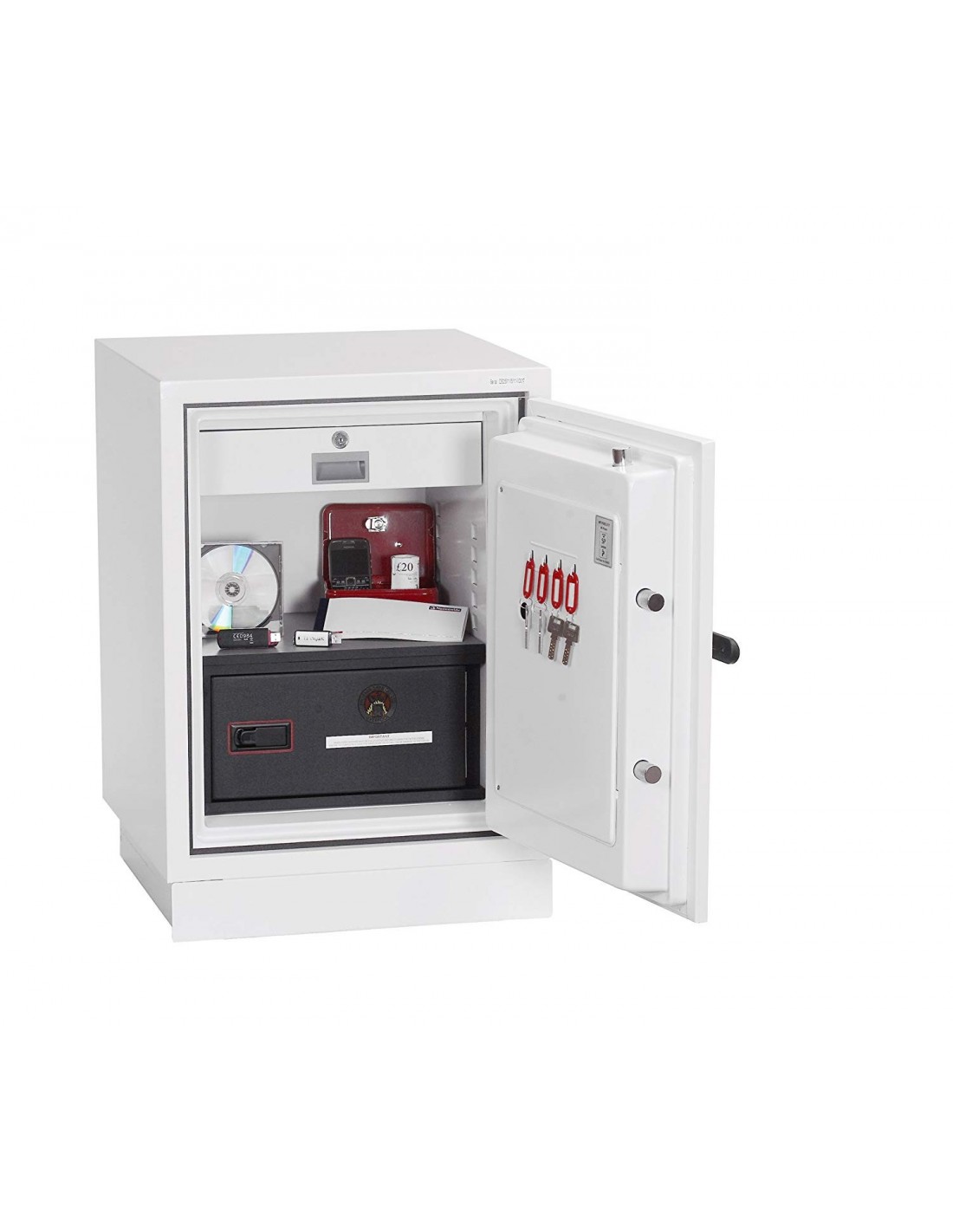 - QUATRE COFFRES EN UN Ce coffre-fort offre une protection contre l' incendie pour les documents papier, disquettes informatiques, bandes et toutes formes de rangement de données et une protection de sécurité pour l'argent et les objets de valeur dans une seule unité. Convient pour une utilisation dans des locaux résidentiels ou commerciaux.
