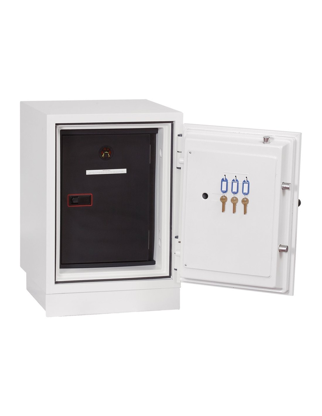 - Corps en acier à double paroi et porte remplie d'un matériau barrière résistant au feu et d'une porte interne.