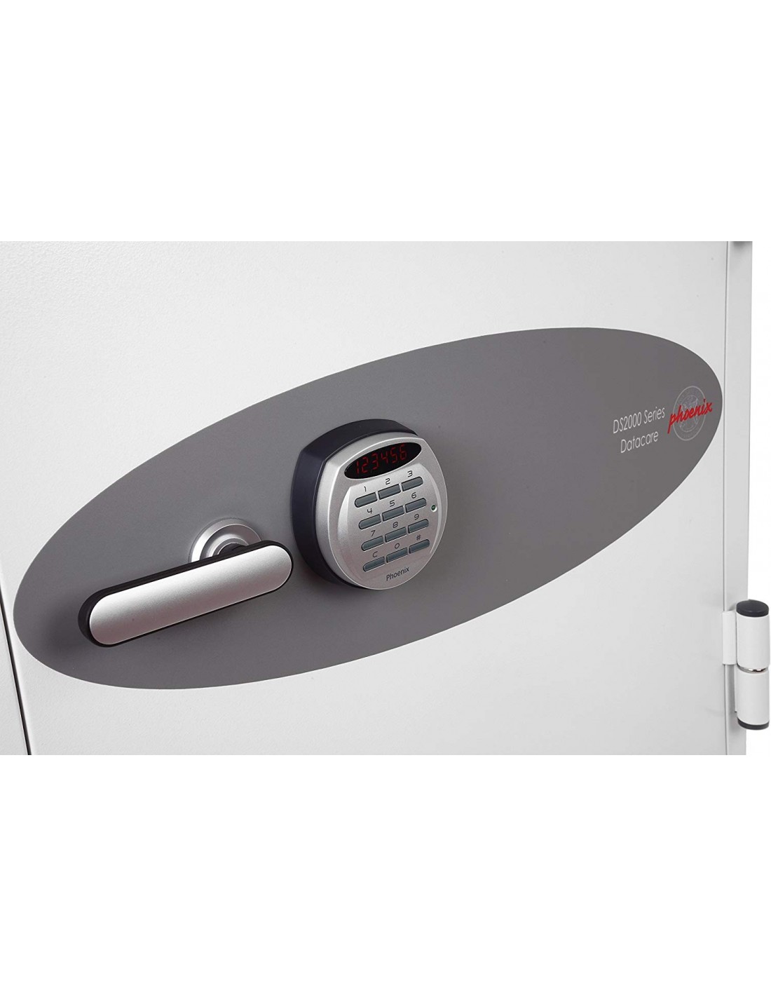 Le coffre fort antifeu Datacare DS2003E de Phoenix a été testé au feu et à l’impact de 9.1 mètres pour résister à une chute à travers les étages d’un bâtiment en feu.
