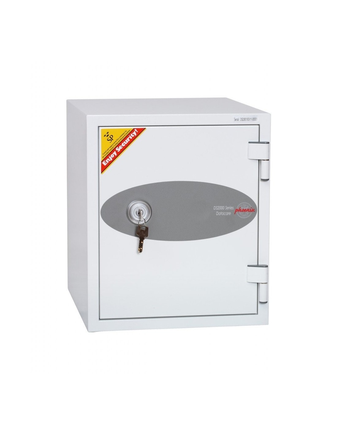 Le coffre fort anti-feu Datacare DS2001K de Phoenix a été testé au feu et à l’impact de 9.1 mètres pour résister à une chute à travers les étages d’un bâtiment en feu.