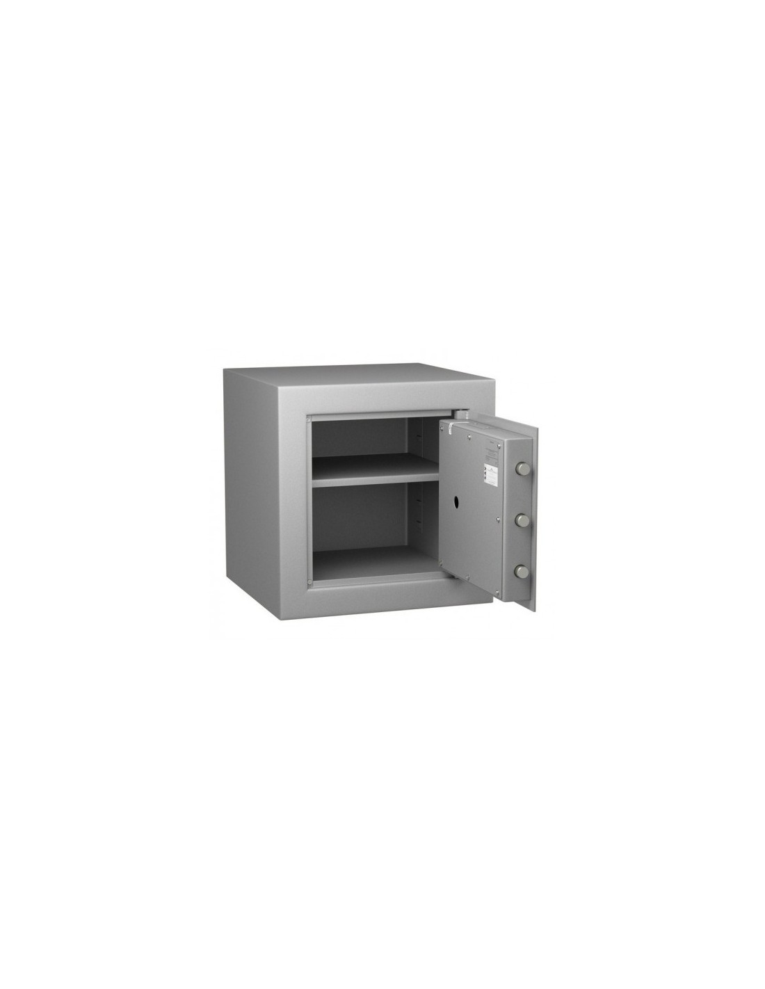 le coffre fort de dépôt Vulcain Dépôt 40 est certifié de la norme Allemande VDMA niveau B qui assure une grande résistance à l'effraction par outils mécaniques, accompagnée d'une haute résistance au feu avec une double paroi remplie de matière non inflammable,