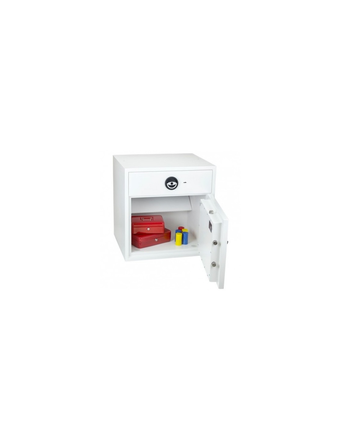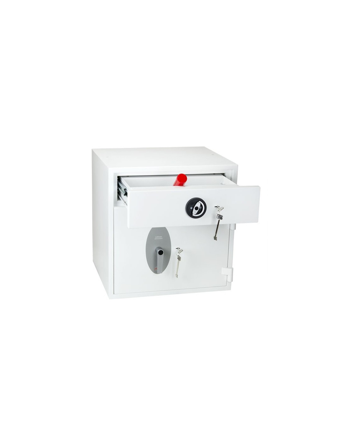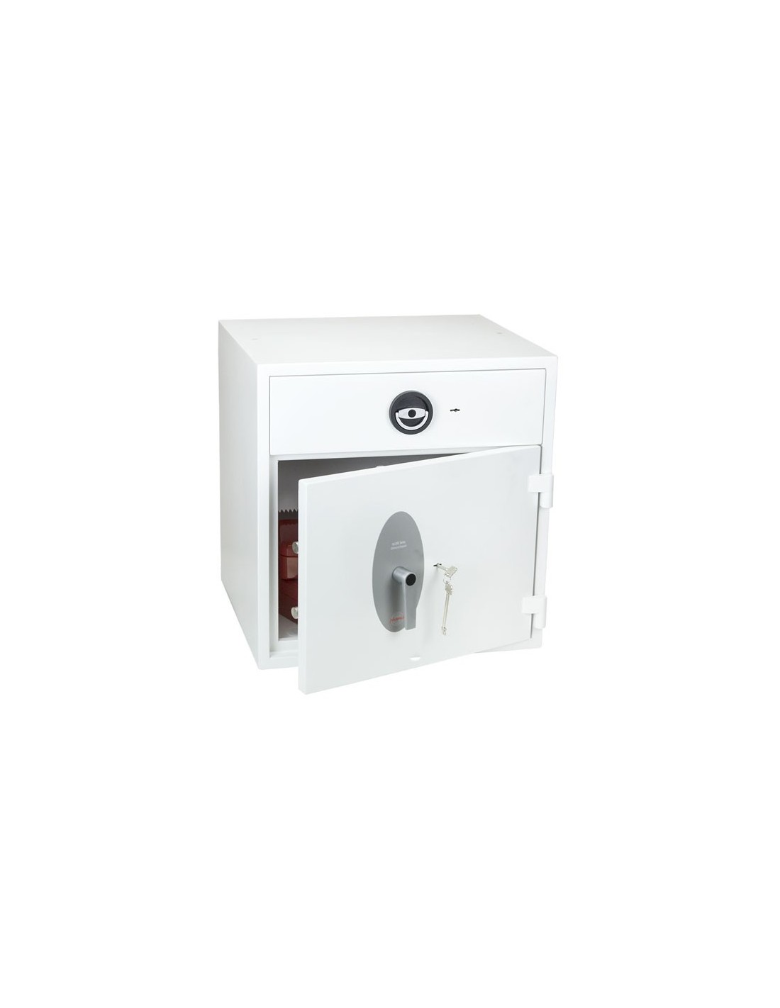 Afin de fournir une protection ultime contre le vol, la porte du coffre fort de dépôt Diamond HS1091KD de Phoenix est de construction en double parois intercalées avec du métal soudé, plaques anti-perçage et re-verrouillage de la porte en cas d’attaque donnant une grande force et résistance à toute tentative de forcement. Ce coffre fort antivol et anti feu est fourni avec un tiroir de dépôt coulissant de haute sécurité avec un système spécial déflecteur pour une sécurité maximale Le coffre fort de dépôt Diamond HS1091KD de Phoenix est le bon choix pour mener une tranquillité d’esprit, avec un système de verrouillage serrure à clef de haute sécurité à double panneton VDS Classe 1. Il convient aussi pour le rangement de médicaments contrôlés dont les ingrédients actifs dépassent 500 grammes