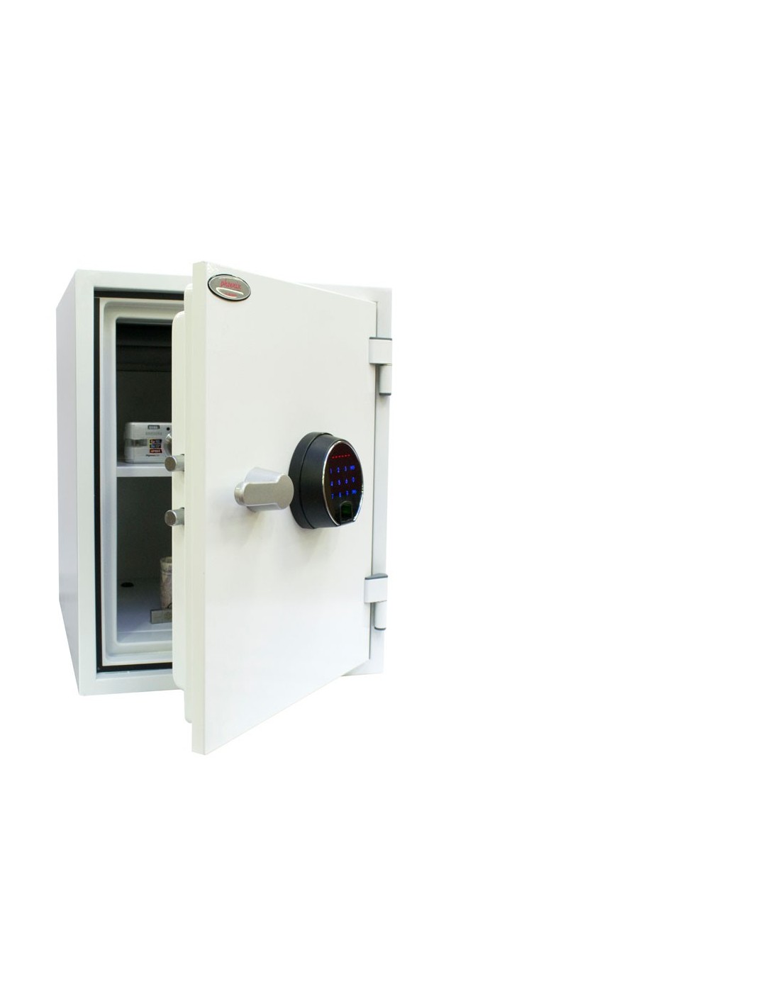 Le coffre fort ignifuge Titan FS1283F de Phoenix fournit une protection très satisfaisante contre les cambrioleurs, il est équipé d'une serrure électronique de haute sécurité facile d’utilisation R3 avec un écran LED clair. Afin de renforcer la sécurité la serrure dispose également d’un double contrôle, code caché et code brouillé ainsi que l'option de verrouillage avec empreintes digitales qui peut être utilisé pour stocker jusqu'à 128 empreintes digitales et une alarme intérieure. Dedans, vous trouverez 4 crochets pour clés.