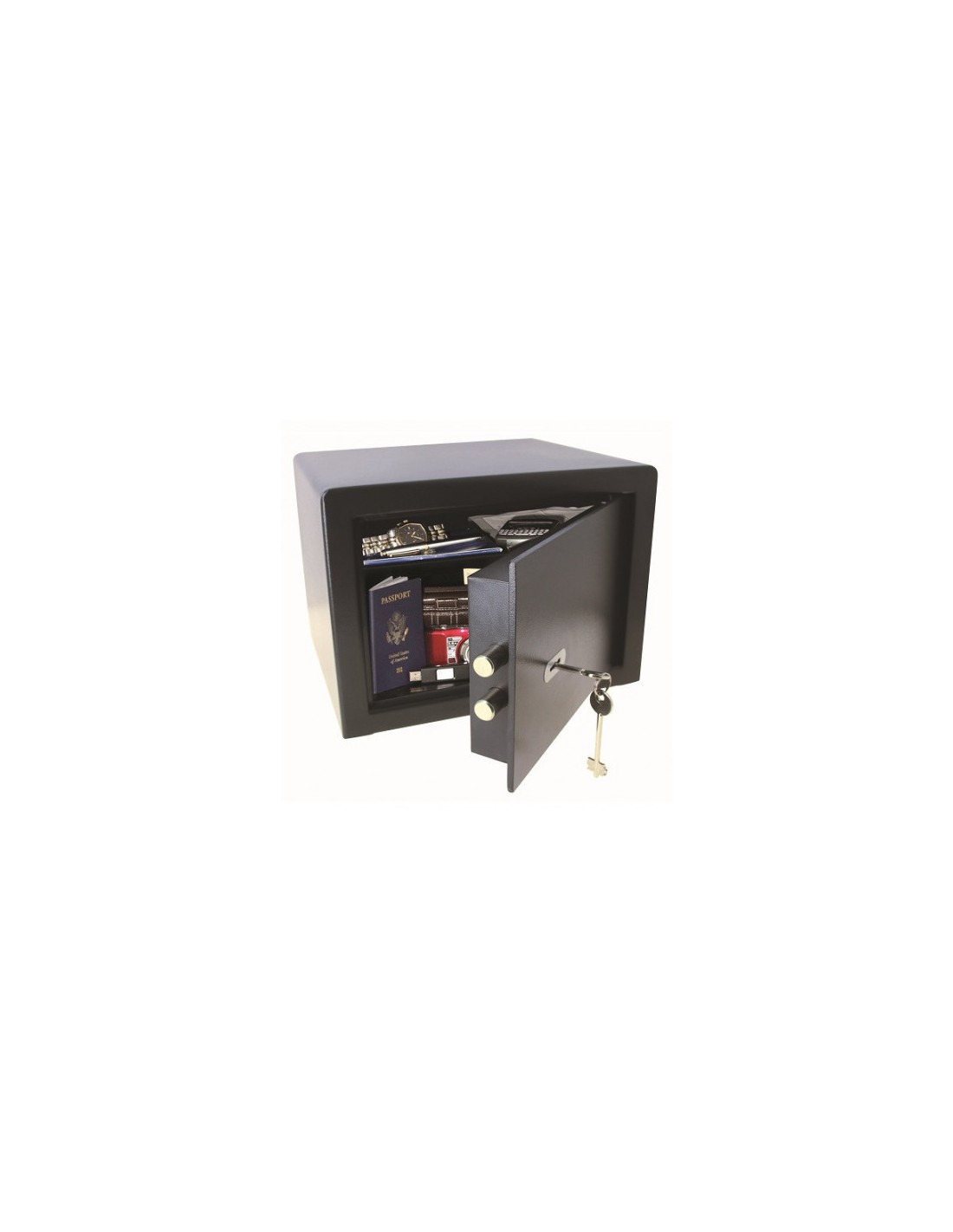 Dans le but de garantir une protection optimale, Le coffre-fort Forcles À Clé 7l est équipé de pênes en acier traité.