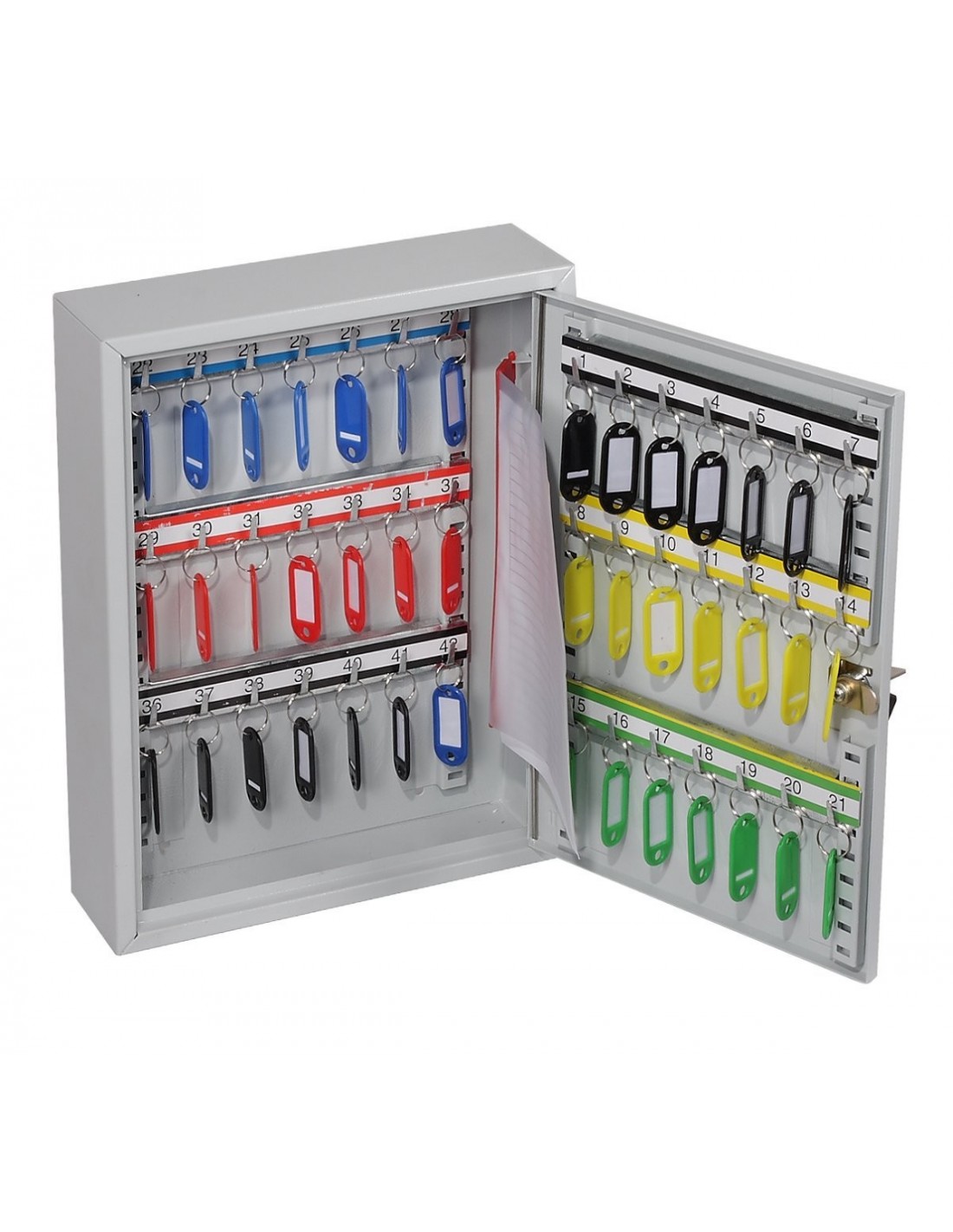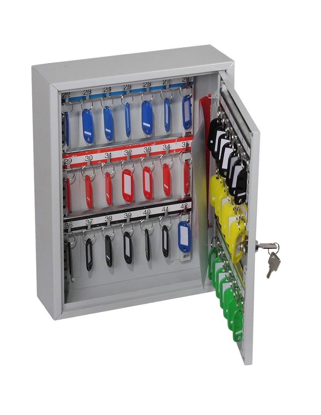 Il s’agit d’une armoire qui vous permet d’avoir le contrôle entre vos mains, idéales pour le commerce de l'automobile ou les agences immobilières. La boite à clés serrure à clé KC0601K est de construction robuste apte pour un rangement optimisé de grands nombre des clés, livrée avec des barres pour crochets réglables et des étiquettes numérotées, aussi avec des trous pré-percé pour une fixation au mur.