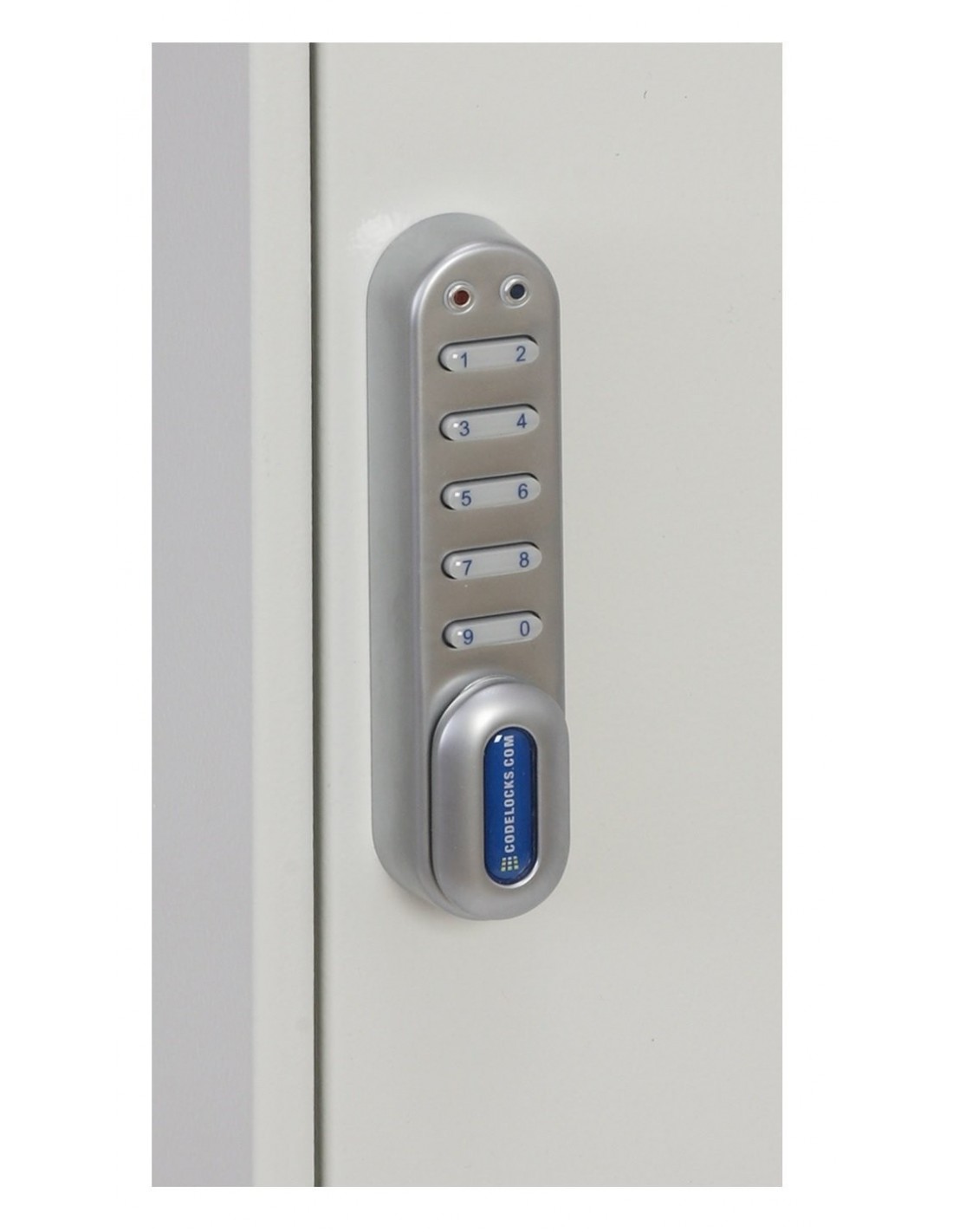 Le Coffre Fort Pour Grosses Clés À Serrure Électronique Kc0301e est sécurisée par une serrure électronique à code économique. Un clavier simple à 10 chiffres facile d’utilisation permettant au propriétaire l’option d’entrer un code à 4 chiffres.