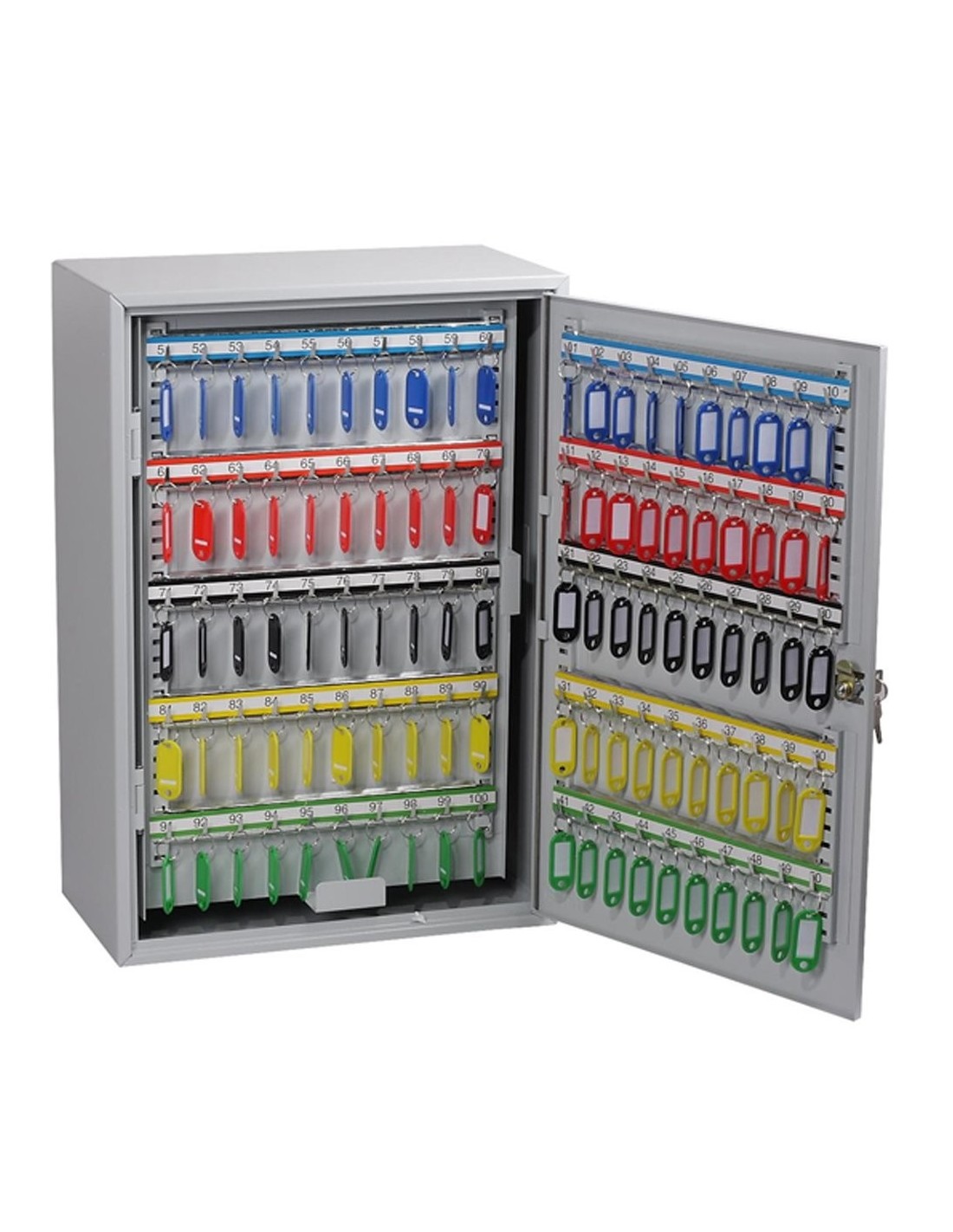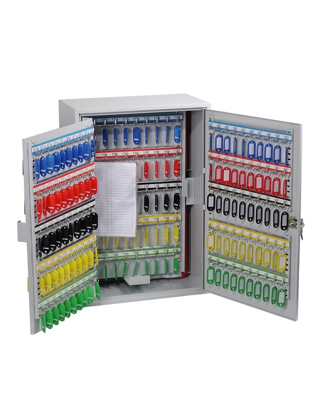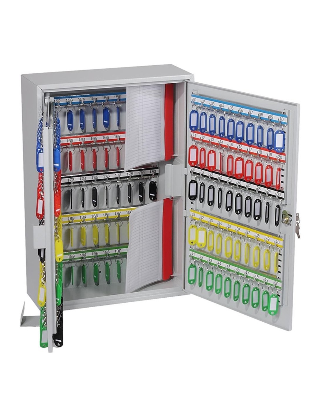 Il s’agit d’une armoire qui vous permet d’avoir le contrôle entre vos mains, idéales pour le commerce de l'automobile ou les agences immobilières. La boite à clés verrouillage électronique KC0604E est de construction robuste apte pour un rangement optimisé de grands nombre des clés, livrée avec des barres pour crochets réglables et des étiquettes numérotées, aussi avec des trous pré-percé pour une fixation au mur.