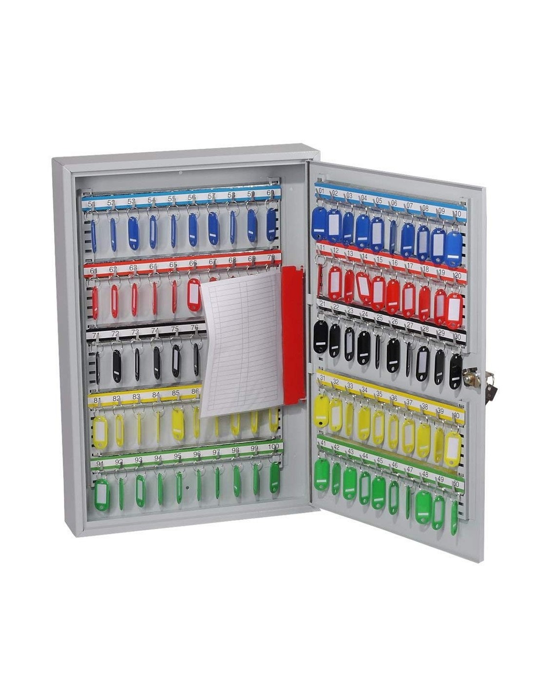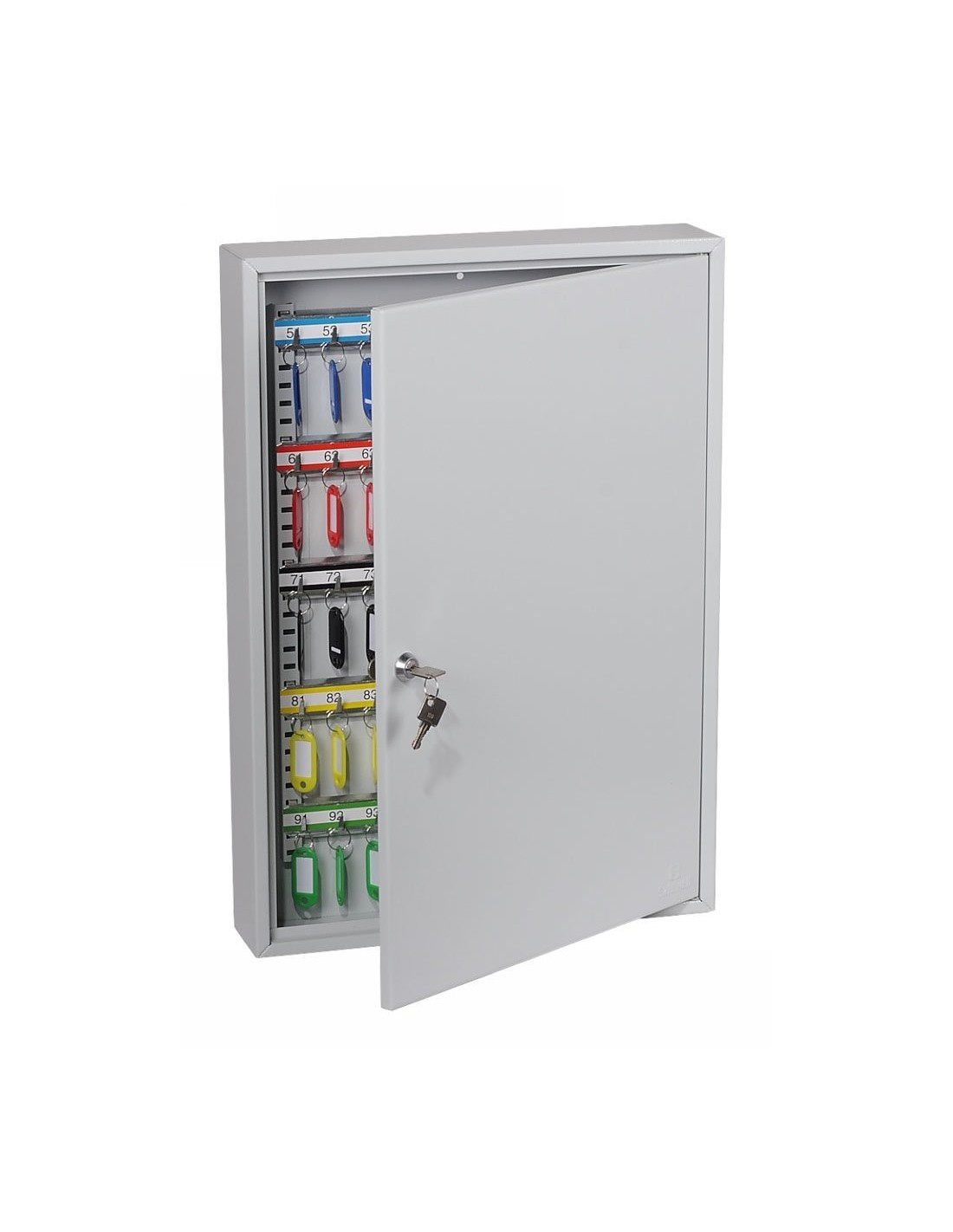 Il s’agit d’une armoire qui vous permet d’avoir le contrôle entre vos mains, idéales pour le commerce de l'automobile ou les agences immobilières. La boite à clés serrure à clé KC0603K est de construction robuste apte pour un rangement optimisé de grands nombre des clés, livrée avec des barres pour crochets réglables et des étiquettes numérotées, aussi avec des trous pré-percé pour une fixation au mur.