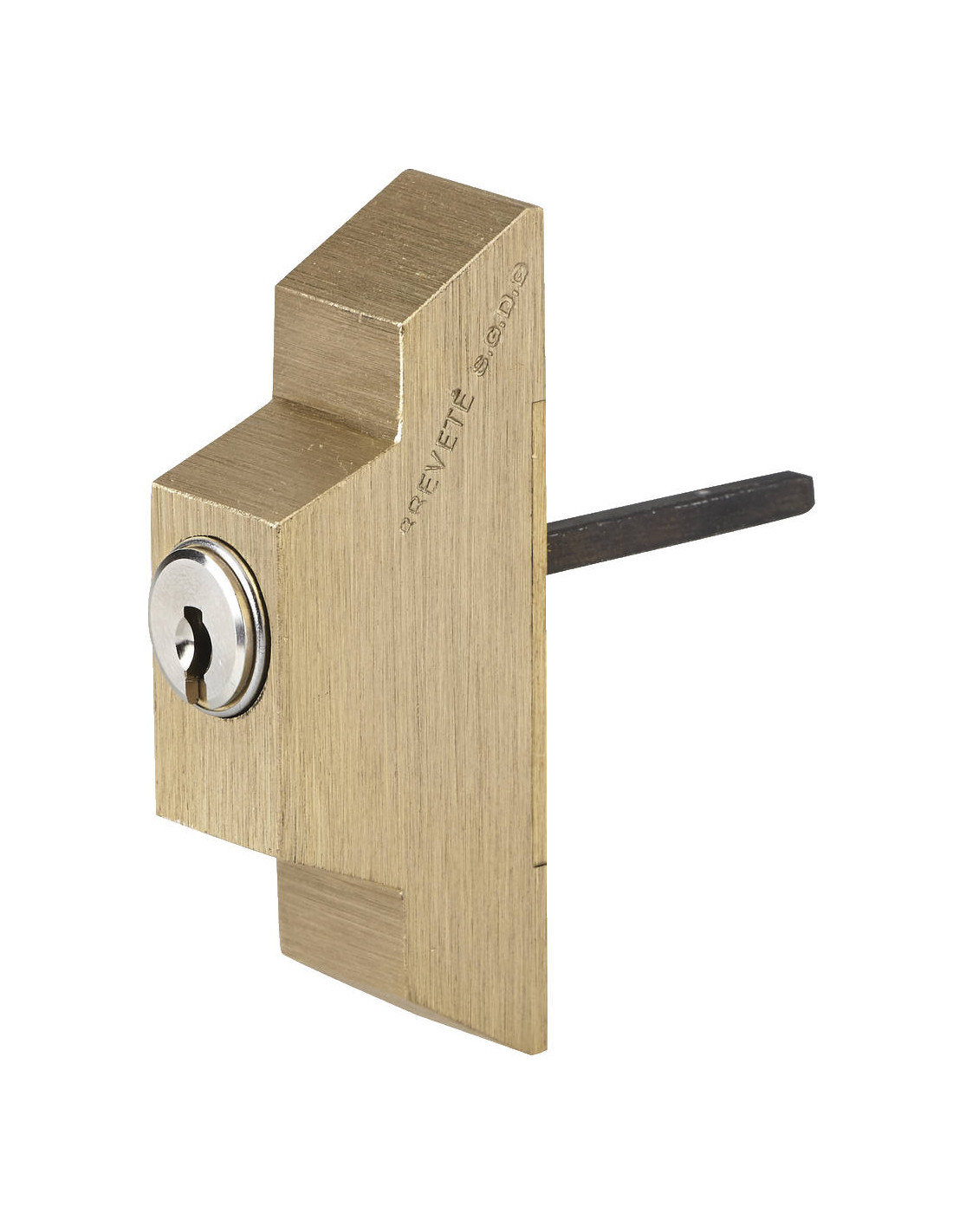 Ensemble en bronze de sécurité à simple empênage pour portes en fer à montants étroits.