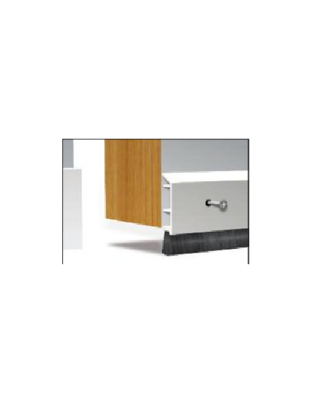 Bas de porte en PVC rigide, muni d'une brosse extra souple en polypropylène traitée aux silicones, permettant d'éviter ainsi toute retenue de poussière. La largeur du support permet de réaliser une isolation parfaite, même si l’écart entre la porte et le sol est important.