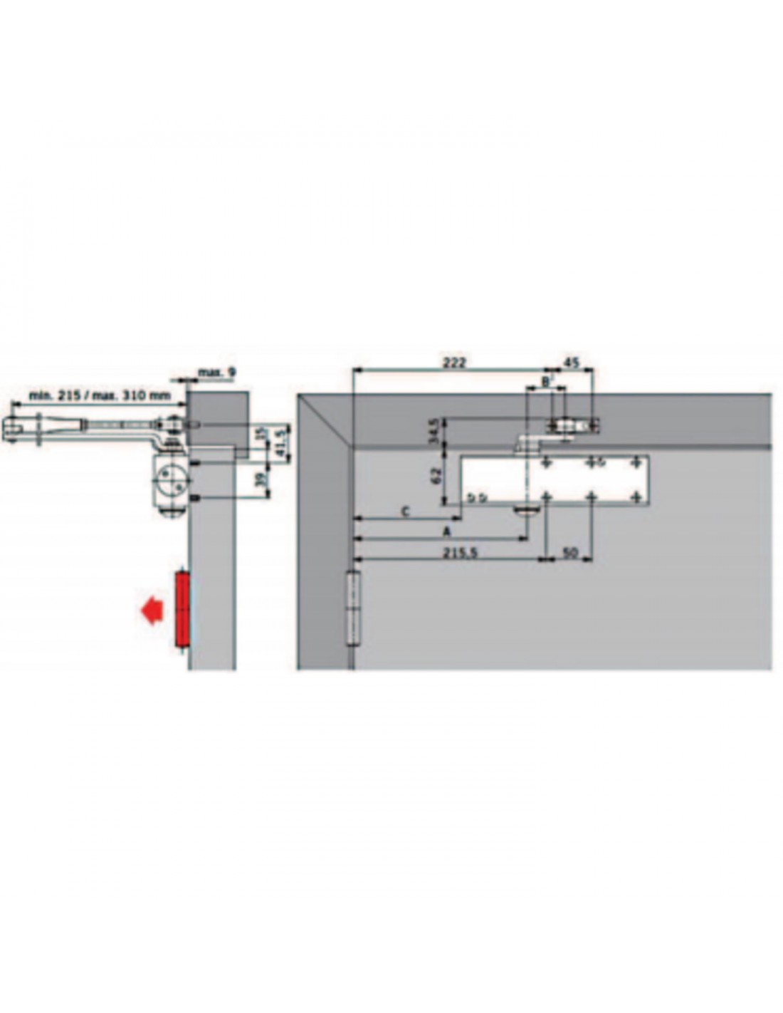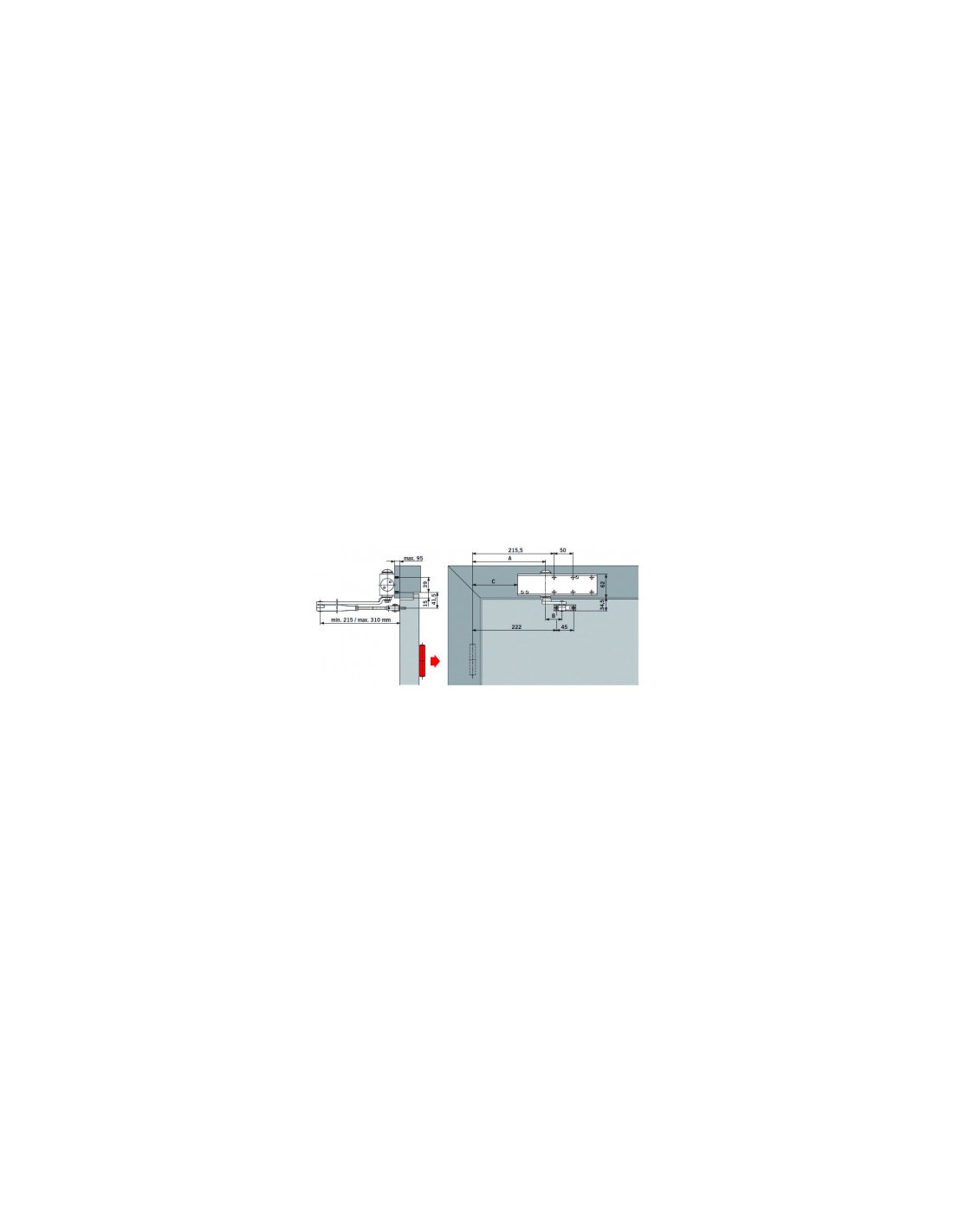 Montage sur vantail côté paumelles, et sur dormant côté opposé aux paumelles.