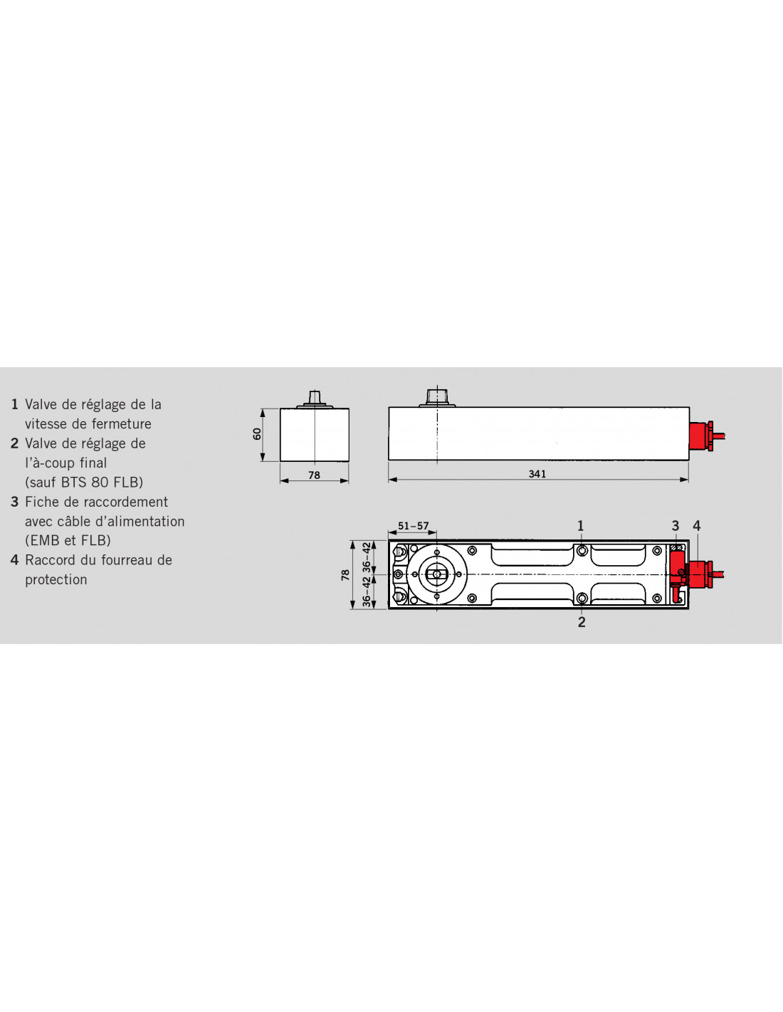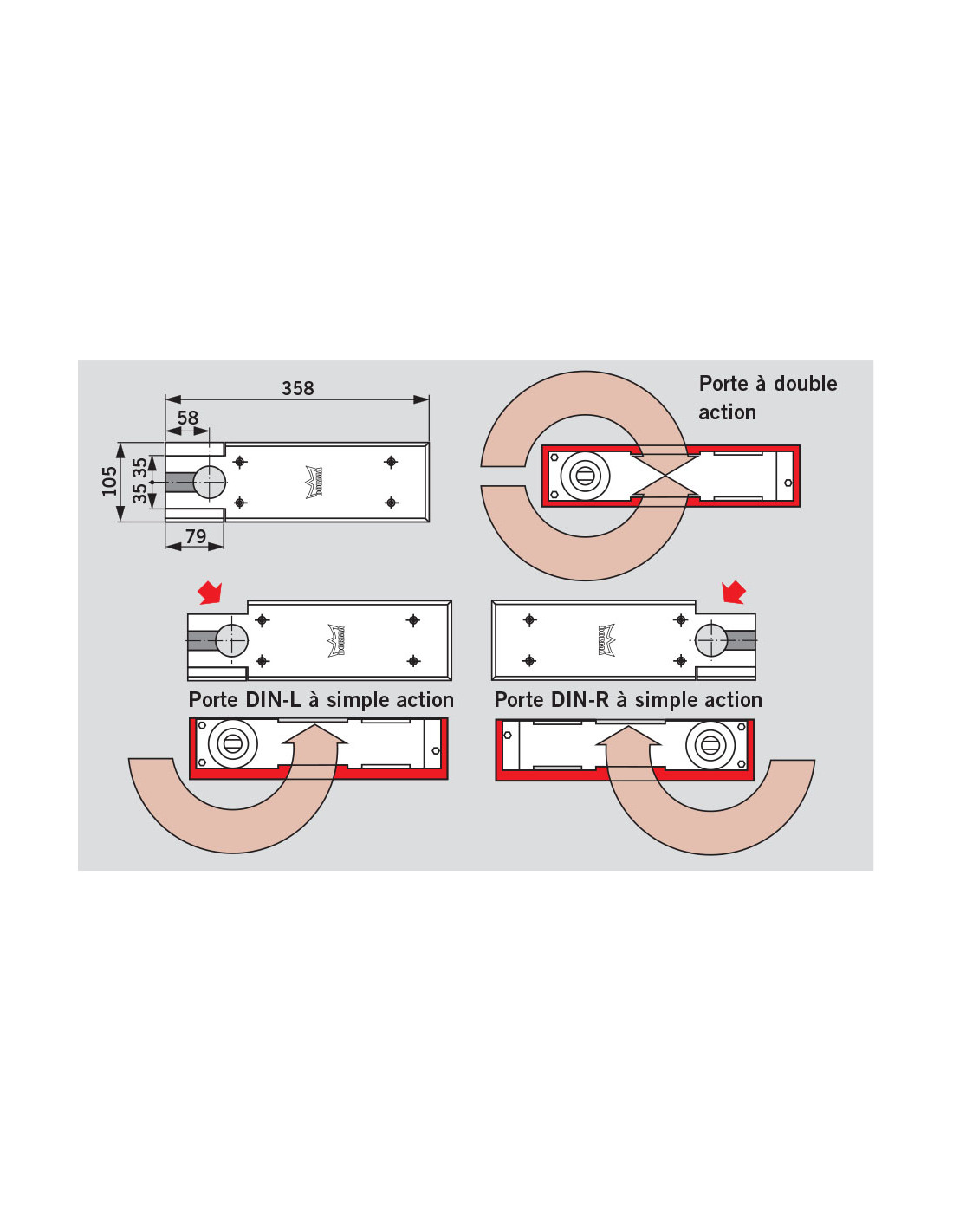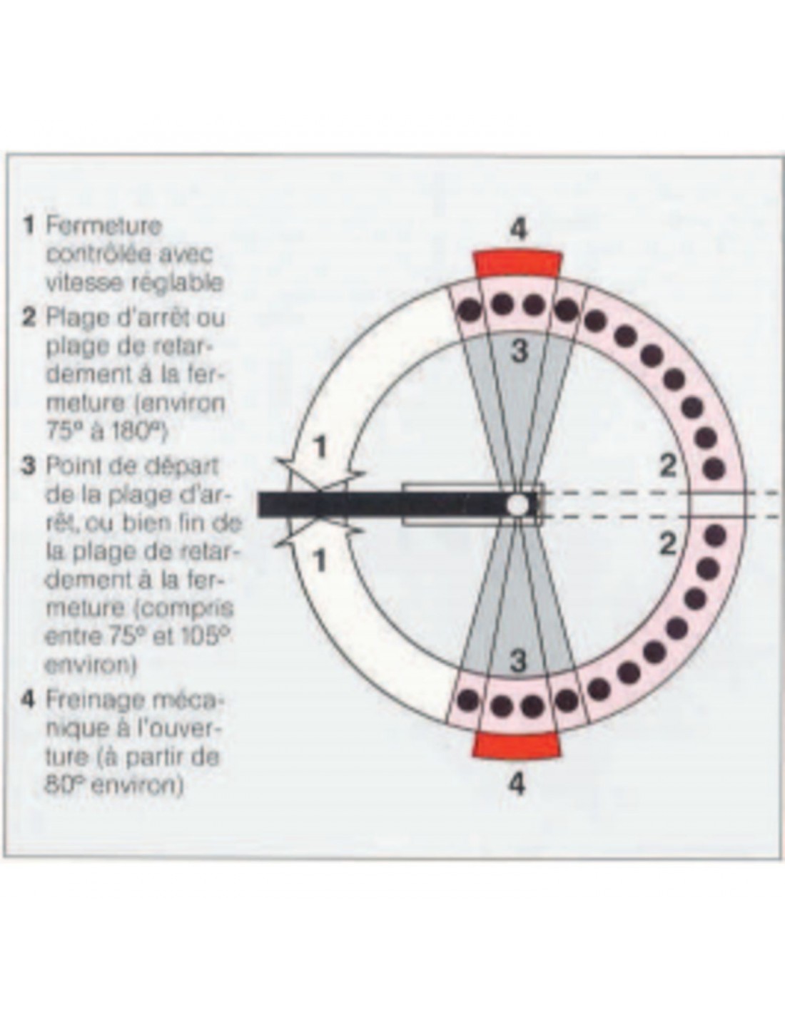- Contrôle de la porte de 75 à 175° et débrayable (180° sur BTS 80 F simple action)