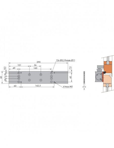 Heracles Accessoires De Ferme-Portes Hr500 : Modèle:Plaque De Montage DIN Argent