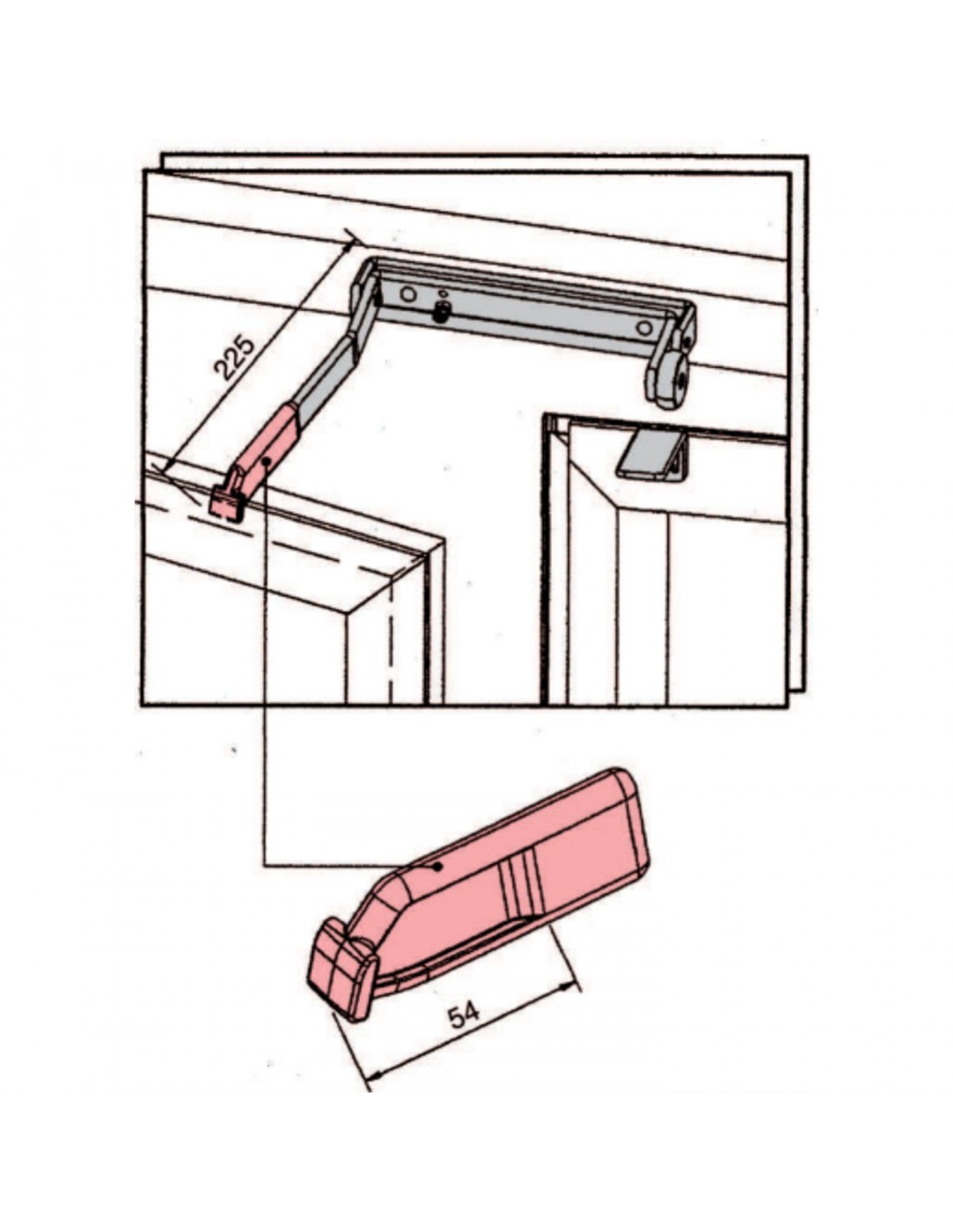 Kit de coordination pour la fermeture des portes à deux vantaux en aluminium extrudé, avec axes et vis en acier inox, équipé de réglage du compas incliné et de réglage en longueur.