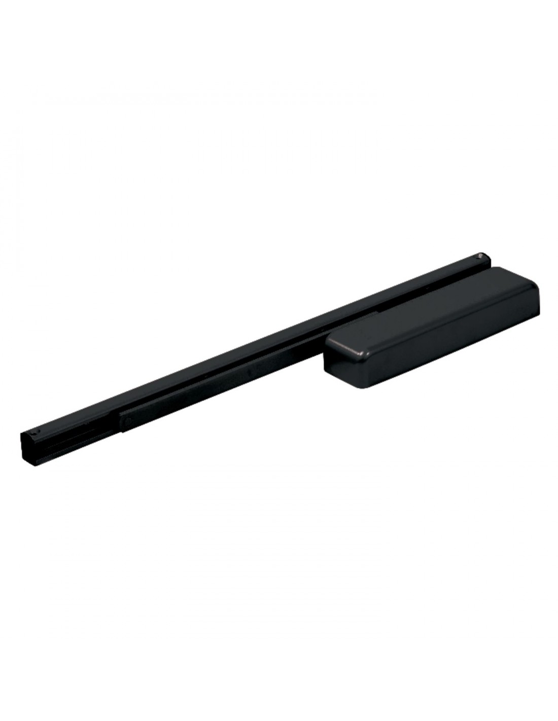 - Ferme-porte en applique pour menuiseries métalliques et bois, cache esthétique avec angles arrondis.