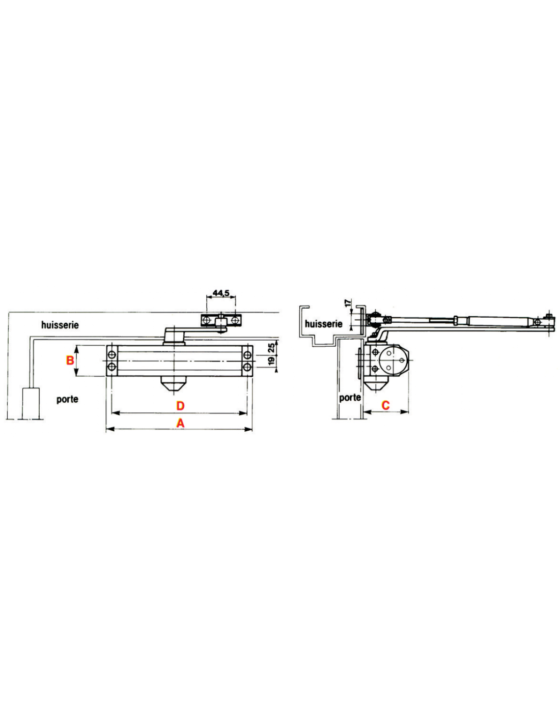 - Pour porte simple action bois ou métal et en verre trempé avec accessoires spécifiques.