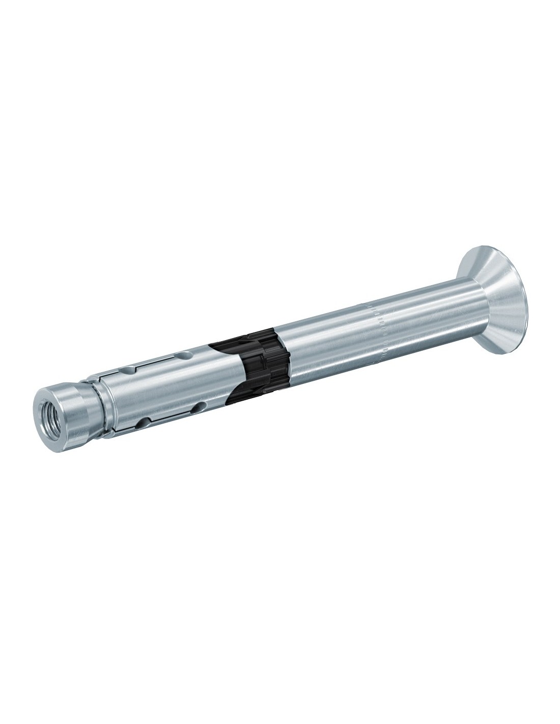 Avec tête fraisée pour installation à fleur. + Voir plus de détailsLa cheville hautes performances FH II SK avec tête fraisée est une cheville à douille en acier électrozingué. La cheville convient pour le montage rapide traversant. Lors du serrage, le cône est tiré dans la douille et l'expanse contre les parois du forage. La bague en plastique noir évite la rotation de la cheville et compense le glissement. La pièce à fixer est ainsi tirée contre le support. La cheville hautes performances FH II SK avec tête fraisée convient idéalement pour fixer garde-corps, escaliers et échelles dans le béton fissuré et non fissuré.