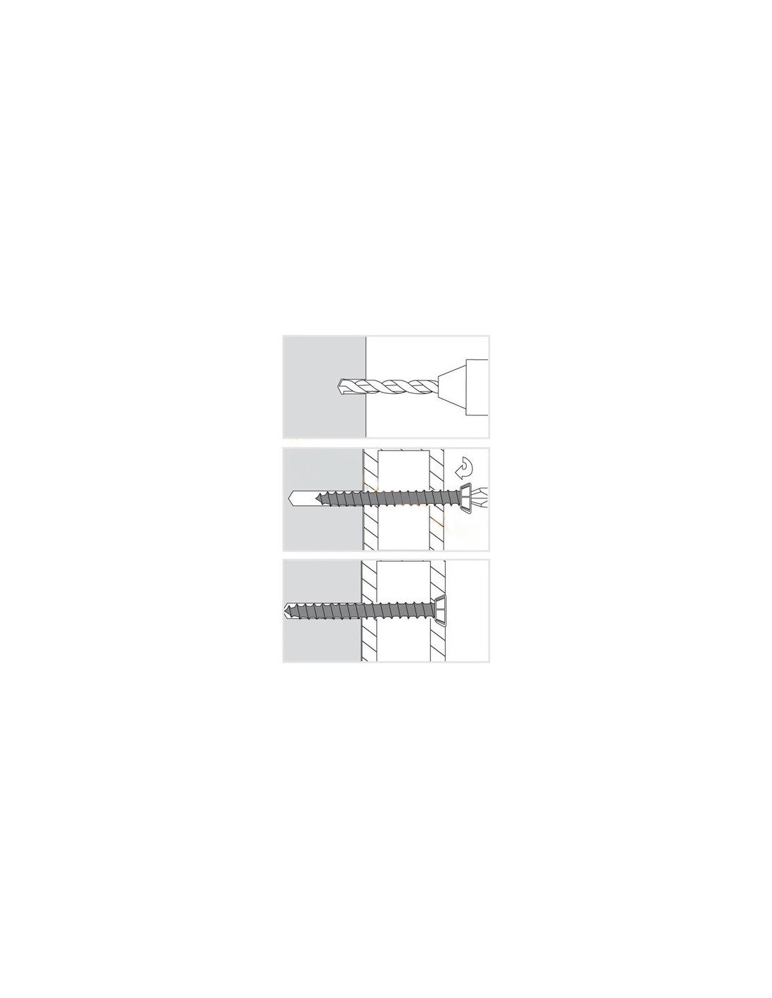 • Montage rapide et facile sans cheville, grâce au filetage spécial de la vis