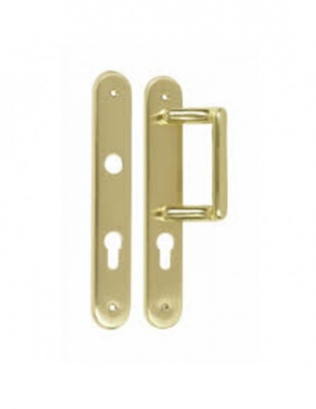 - Jeu de plaques SIGNATURE de finition laiton poli à compléter avec un jeu de béquille double 320 Signature (voir ens.laiton sur rosaces).
