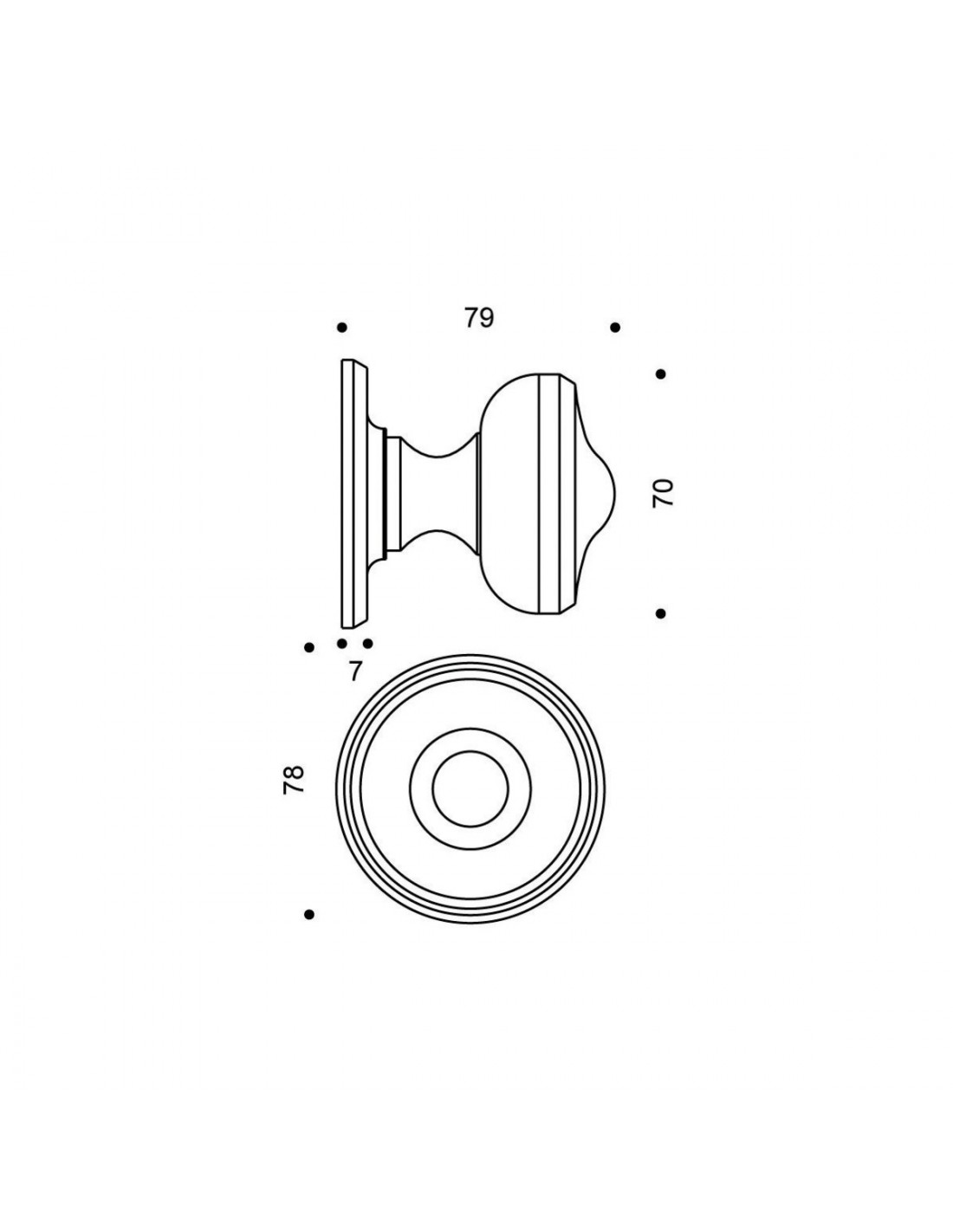 Bouton central de porte 5251 chromé velours