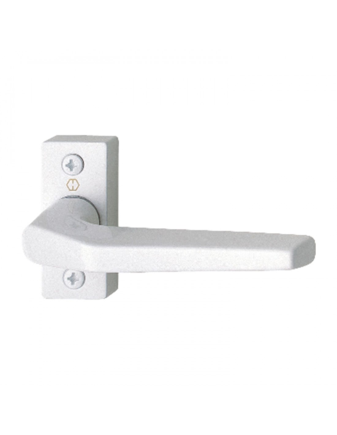 - Béquille double déportée en alu anodisé ou époxy sur rosaces fondues pour menuiserie métallique et PVC.
