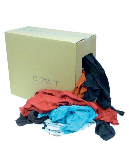 Carton de 10 kg de chiffons couleurs demi-fin coton.