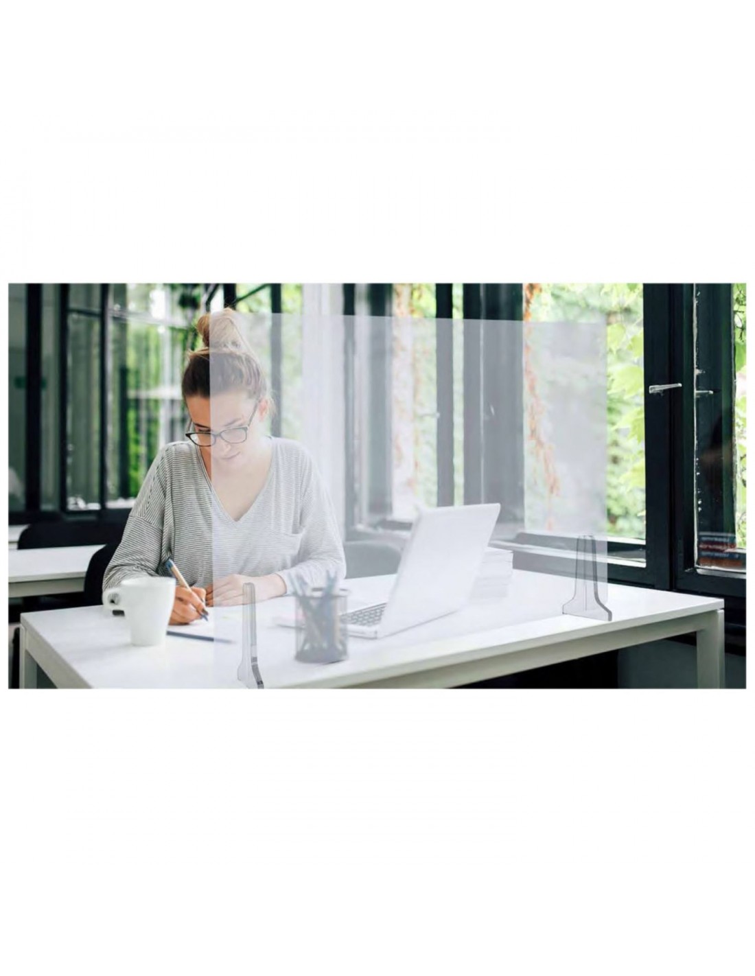 Les ÉCRANS BARRIÈRES sont en plexiglass transparent et s'adaptent sur toutes les surfaces grâce à leurs pieds emboîtables à poser.