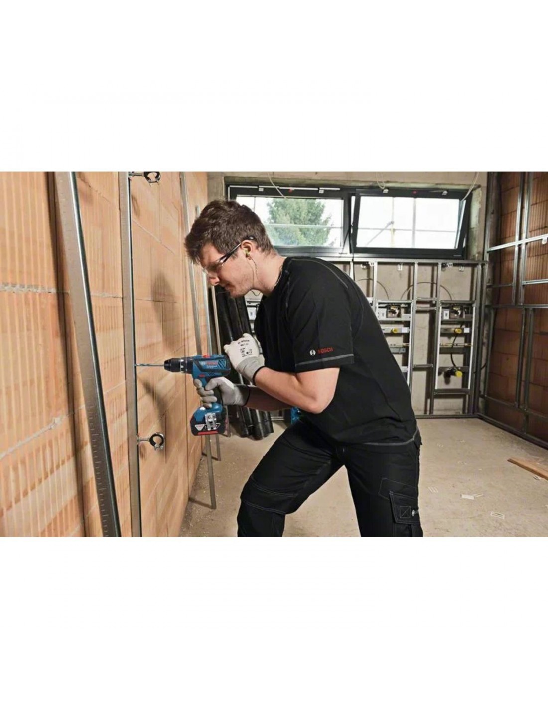 Cette perceuse-visseuse à percussion sans fil Bosch GSB 18V-28 Professional est un outil performant remarquable dans la catégorie 18 V grâce à son couple maximal de 63 Nm. Dotée d'une forme compacte et ergonomique, elle permet une bonne maniabilité et un grand confort d’utilisation. La GSB 18V-28 Professional est conçue pour percer dans le bois jusqu’à un diamètre de 38 mm, dans l’acier jusqu’à un diamètre de 13 mm et pour visser jusqu’à un diamètre de 8 mm. Sa fonction percussion permet de percer dans la maçonnerie jusqu’à un diamètre de 13 mm. Cette perceuse-visseuse à percussion sans fil Bosch GSB 18V-28 Professional dispose également d’un engrenage 2 vitesses, d’un mandrin Autolock, de l’Electronic Cell Protection et d’une batterie Lithium-Ion, elle est compatible avec toutes les batteries et tous les chargeurs 18 V de Bosch Professional (Professional 18V System).