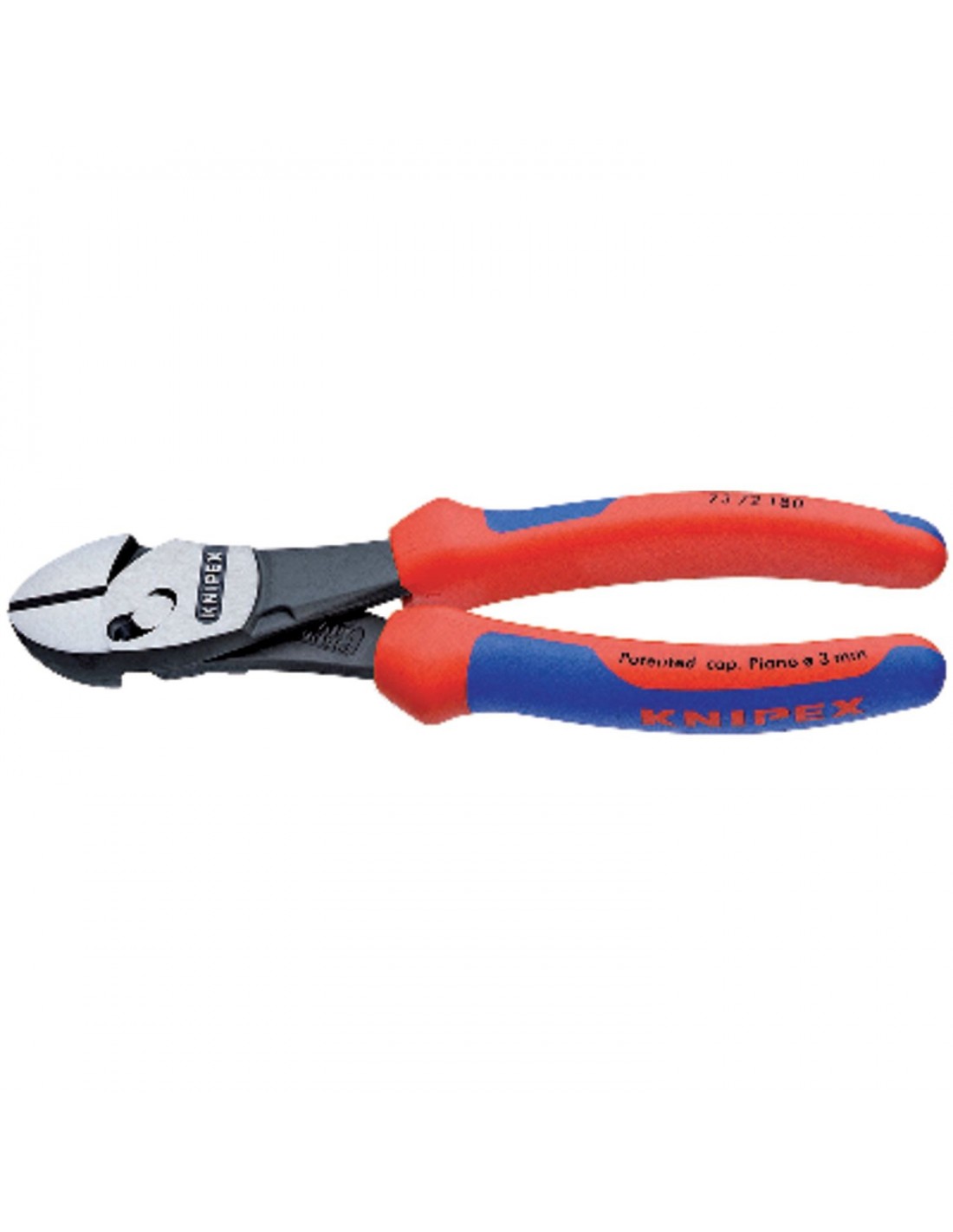 - Coupe extrêmement aisée sous une faible application de force: coupe avec 50 % de facilité en plus en comparaison avec la pince coupante de côté à démultiplication déjà éprouvée KNIPEX.