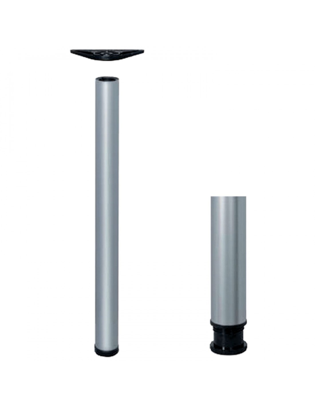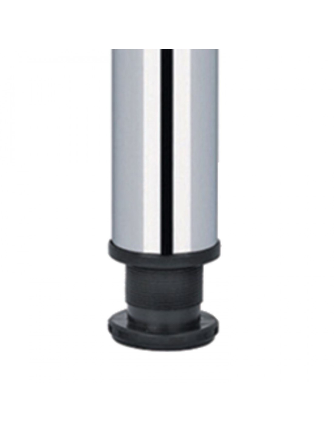 - Pied cylindrique en acier, patin en plastique, plaque à visser en zamac.