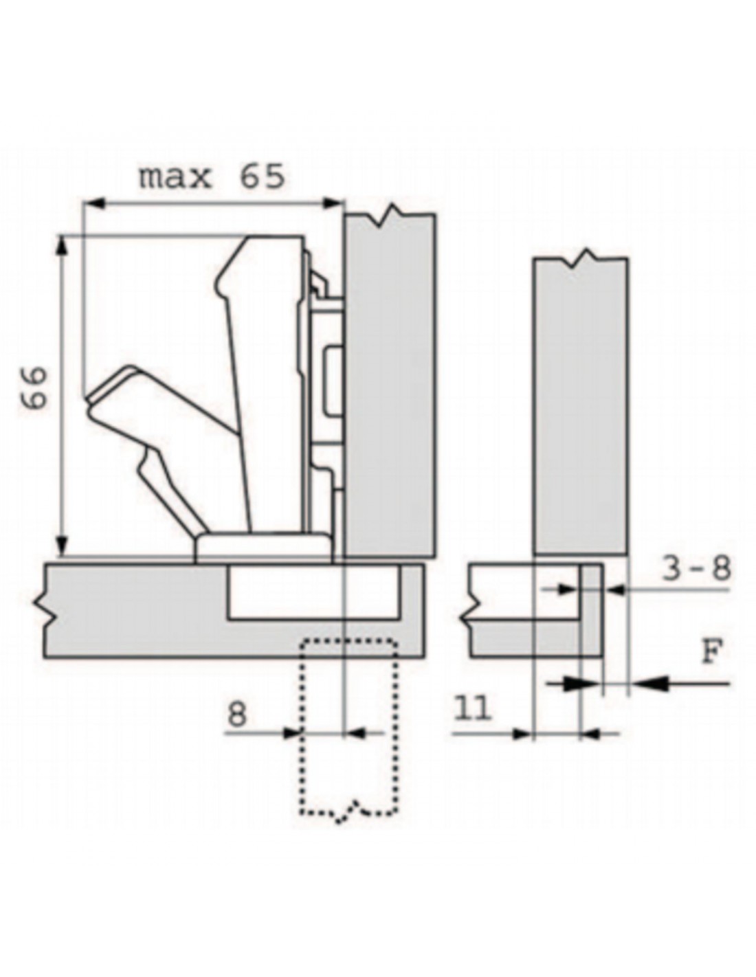 - Avec INSERTA en plus montage sans outil de la charnière sur la porte.