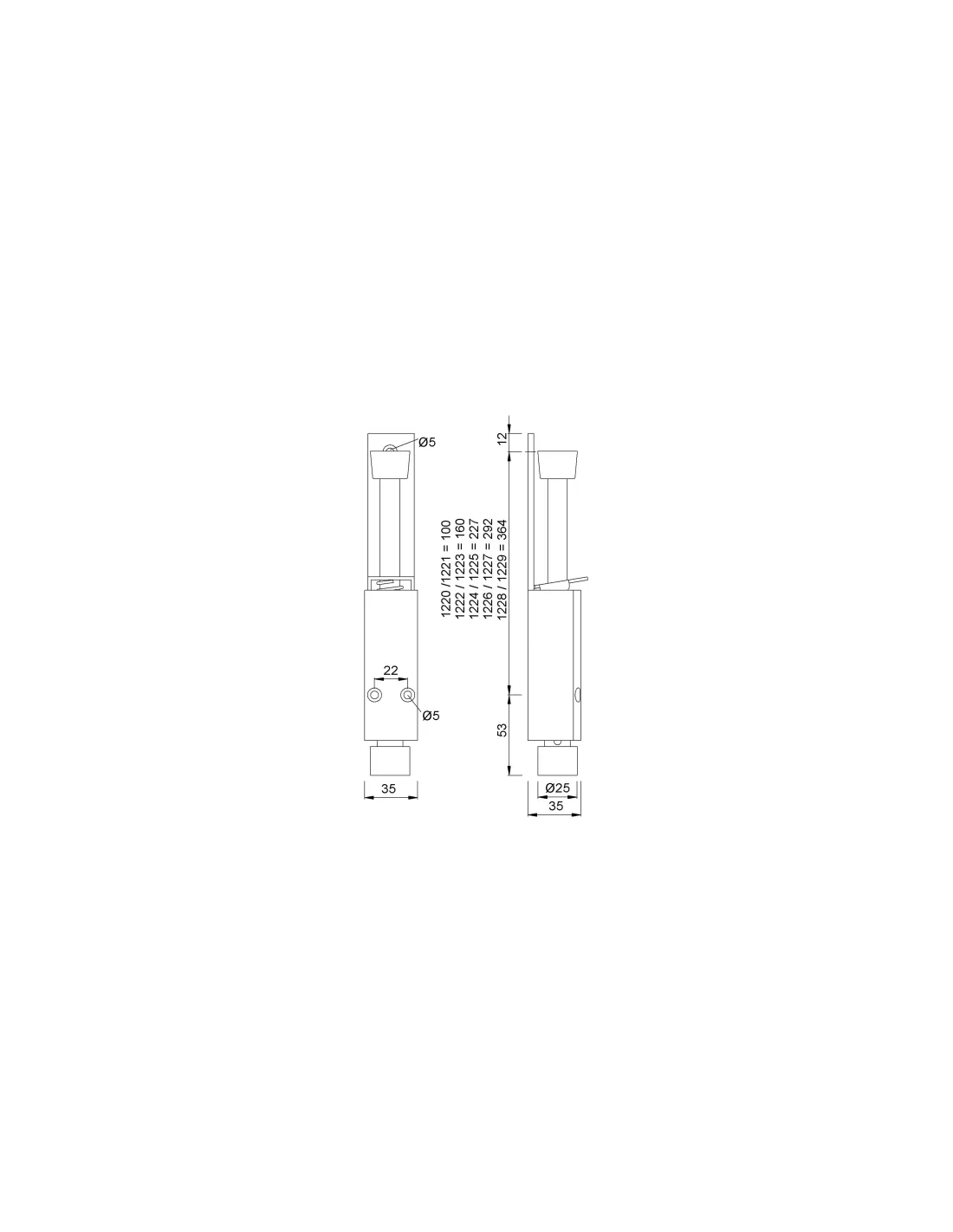 - Hauteur totale: 225mm (tige rentrée).