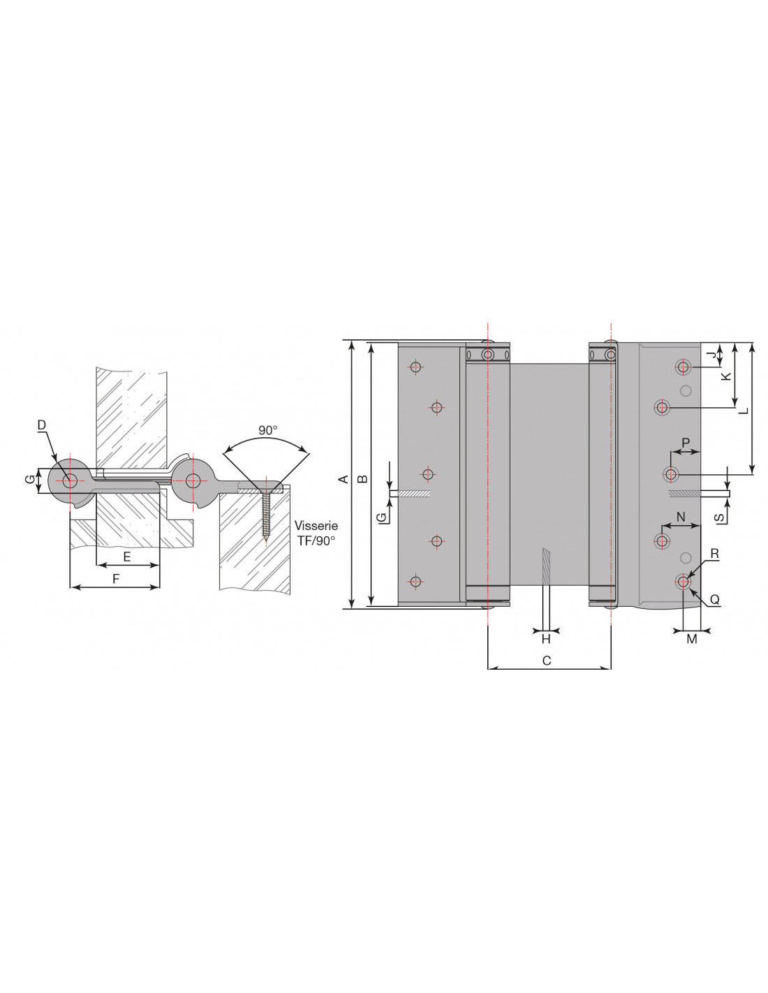 - Charnière double action pour porte battante.