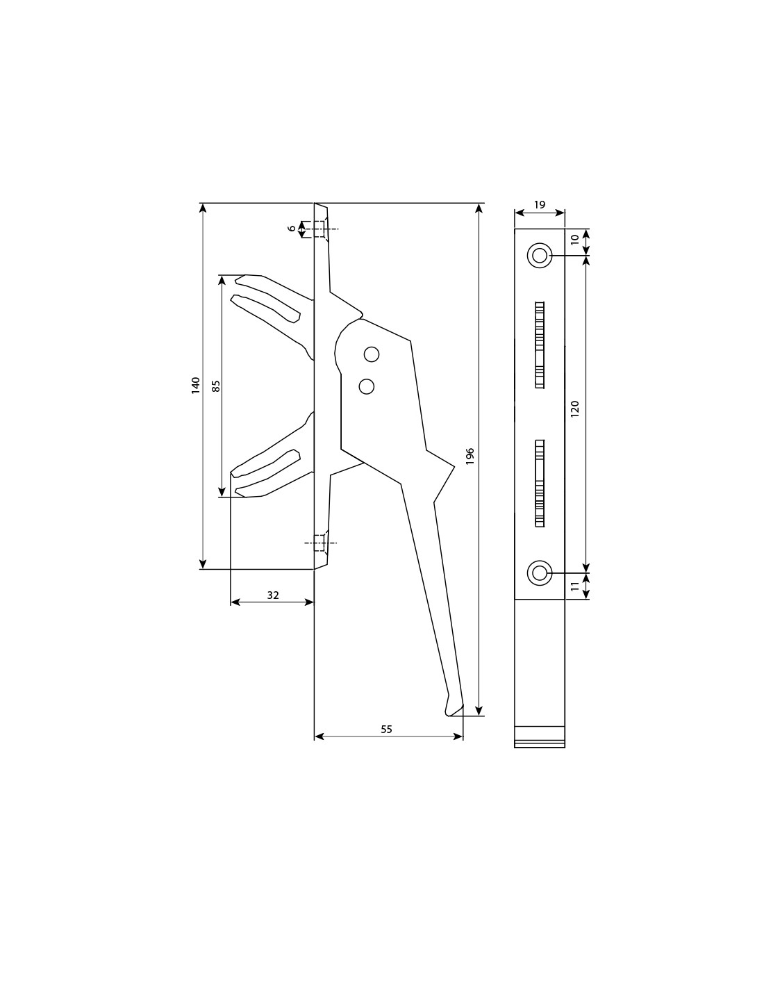 • Crémone à fourches à barillet