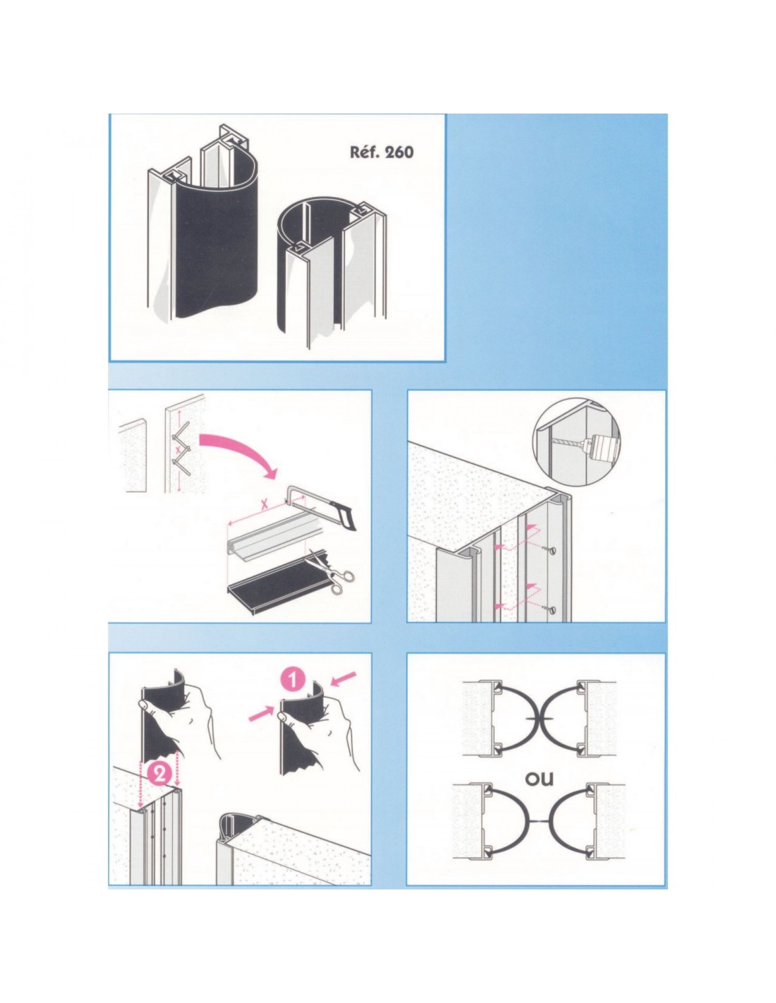 • 2 profilés en alu anodisé argent de 2 m 50 à fixer sur le battant.