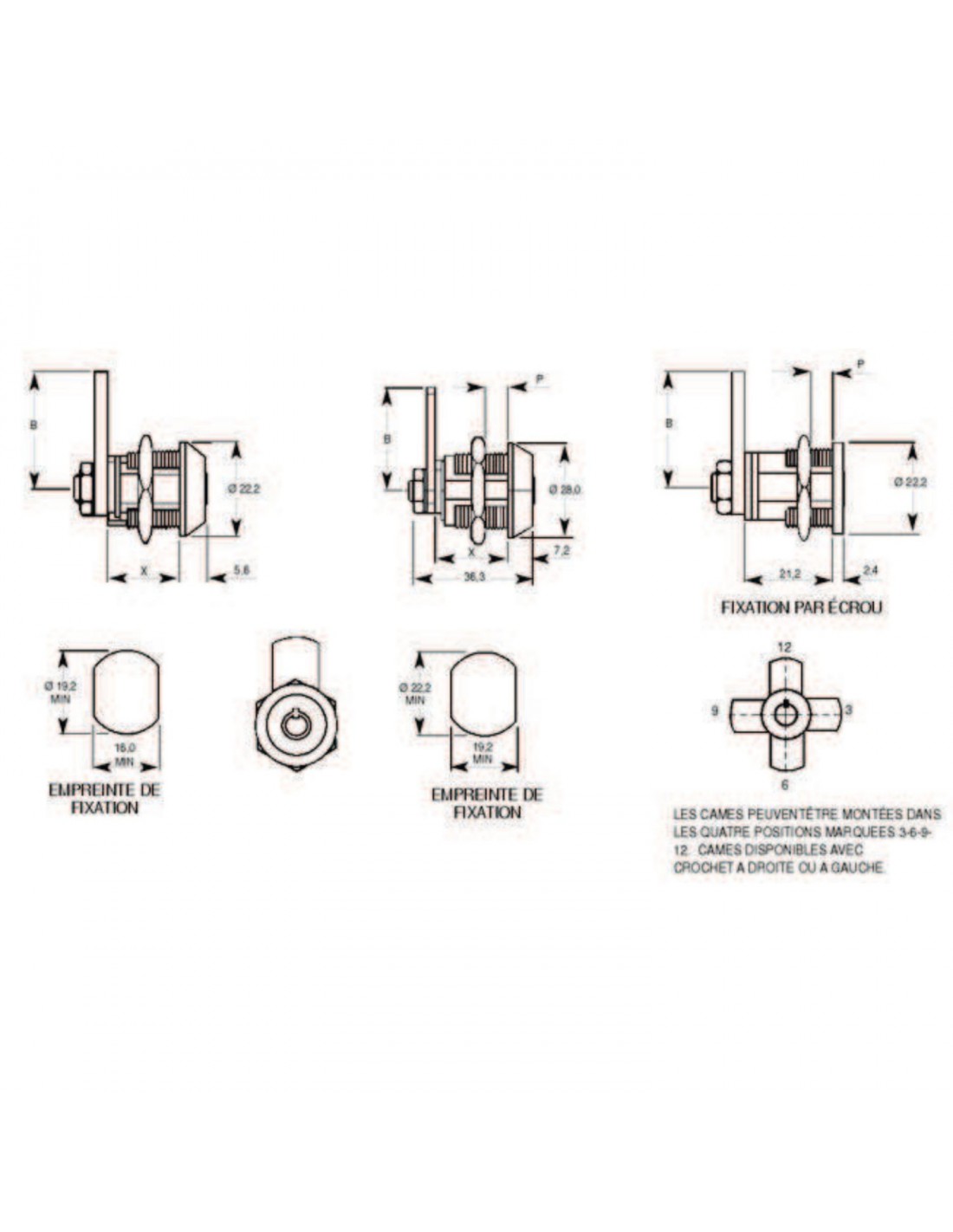 - Les cames peuvent être montées dans les quatre positions 3-6-9-12