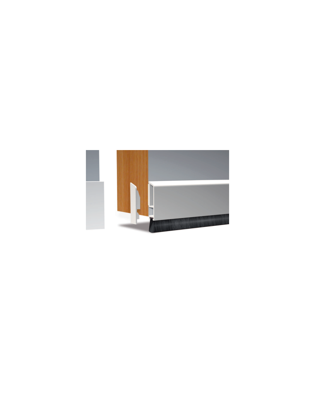Bas de porte en PVC rigide, muni d'une brosse extra souple en polypropylène traitée aux silicones, permettant d'éviter ainsi toute retenue de poussière.