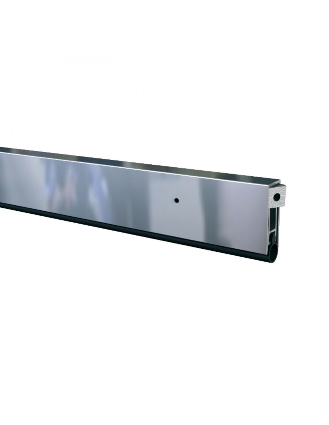 - Bas de porte automatique en aluminium naturel, tout comme son mécanisme intérieur.